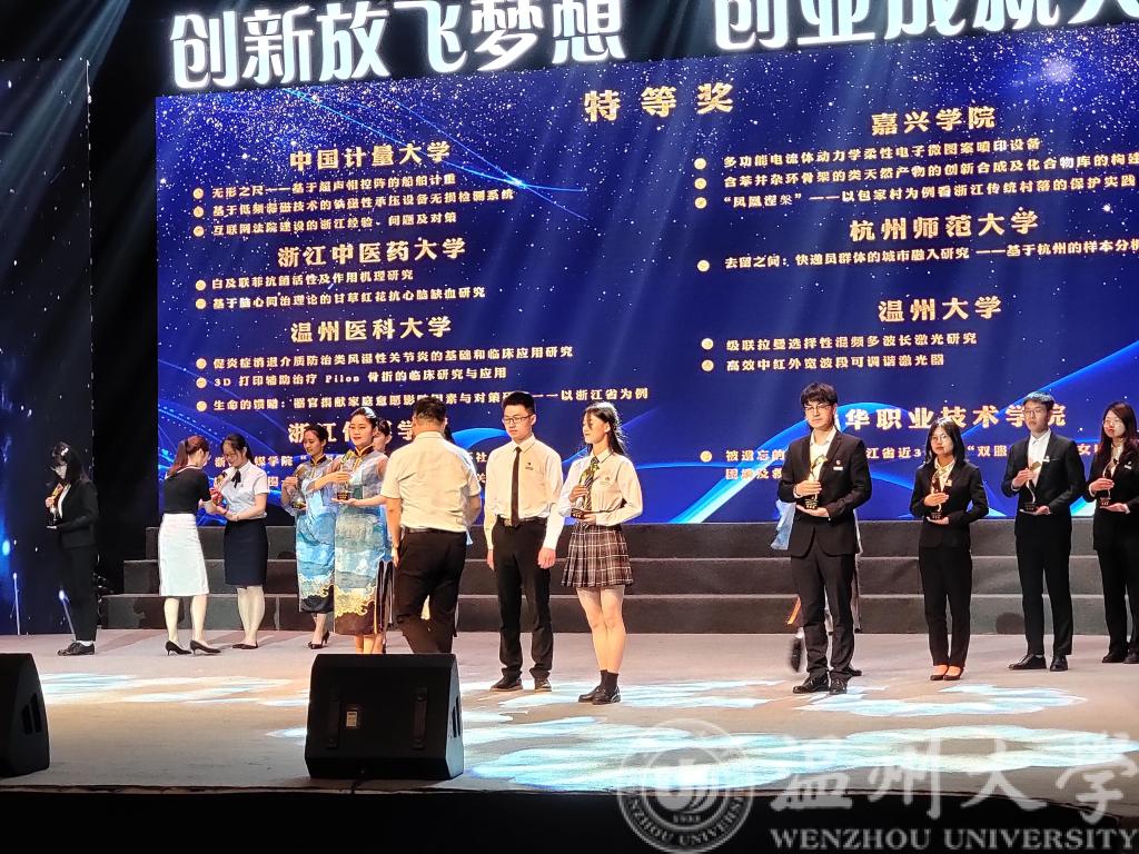 本届“挑战杯”竞赛,欧美无码 共报送8件作品参加省赛角逐,其中6件作品入围现场决赛展示,由朱海永、段延敏老师共同指导的《级联拉曼选择性混频多波长激光研究》和《高效中红外宽波段可调谐激光器》两项作品荣获特等奖,由林丽丽、林爱菊、胡震鹏老师指导的《精准优抚,价值再创:退伍老兵优抚模式创新研究——基于温州市鹿城区615名退伍老兵的实证分析》荣获一等奖。