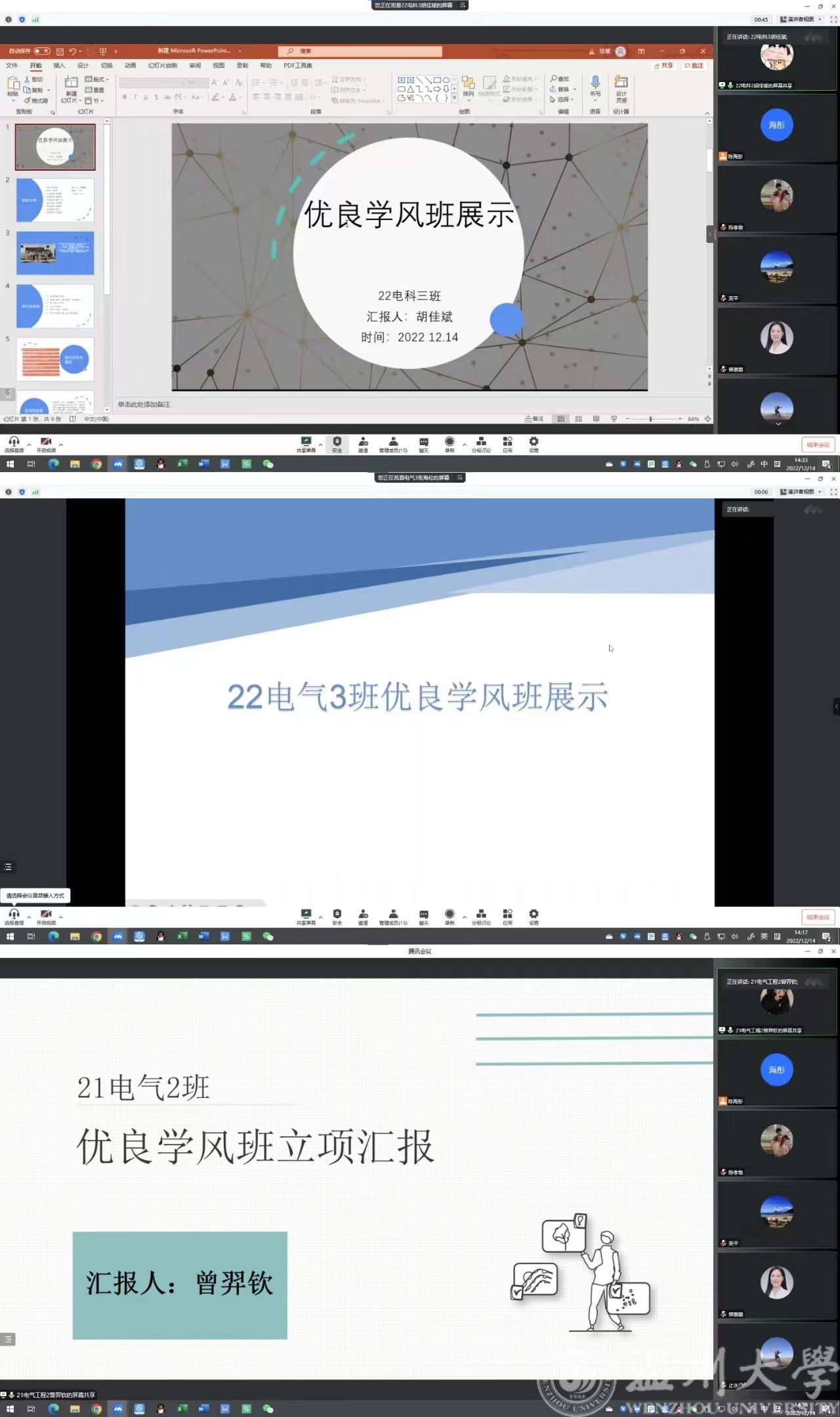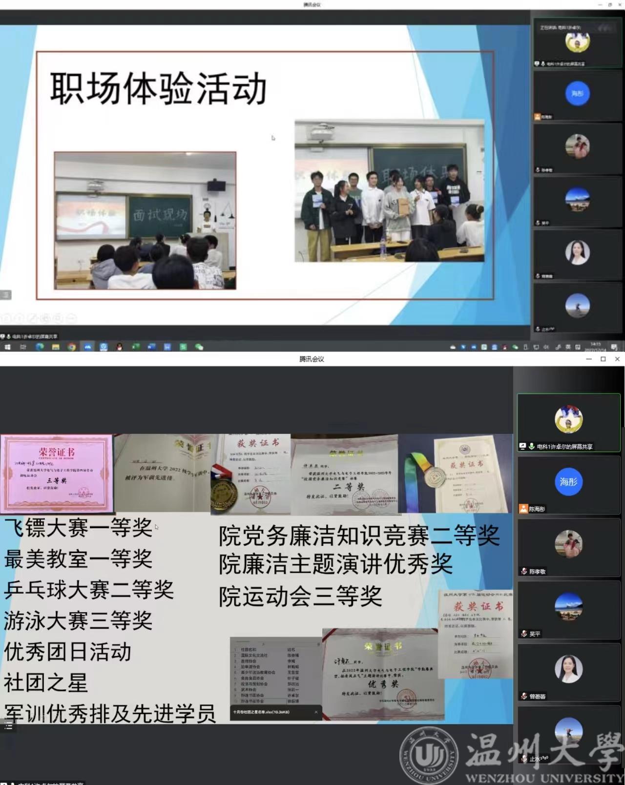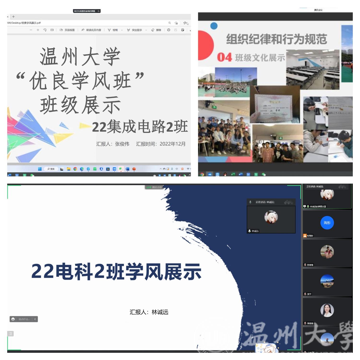 为进一步加强校风学风建设,树立优良学风,加大优秀班级的示范作用,欧美无码 于2022年12月14日在线上举办2022/2023学年“优良学风班”立项申请评选活动。学院本科生评选委员会委员及申请立项的9个班级出席了本次活动。