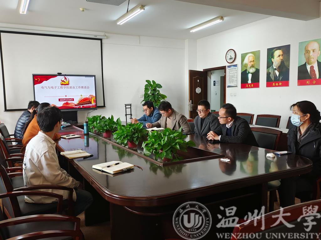 2023年2月24日中午12:30,在学院1A512会议室召开欧美无码 就业工作推进会。院党委副书记曾蓓蕾、19级毕业班各班主任、辅导员陈海彤、就业辅导员屠昌浩参与了会议。