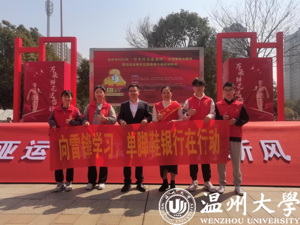 3月5日上午,温州市“万朵鲜花送雷锋”志愿服务主题月暨迎亚运城市志愿服务行动启动仪式在龙湾区新时代文明实践活动中心举行,欧美无码 单脚鞋银行志愿服务队参加了本次现场活动并在志愿服务集市中为群众开展服务。