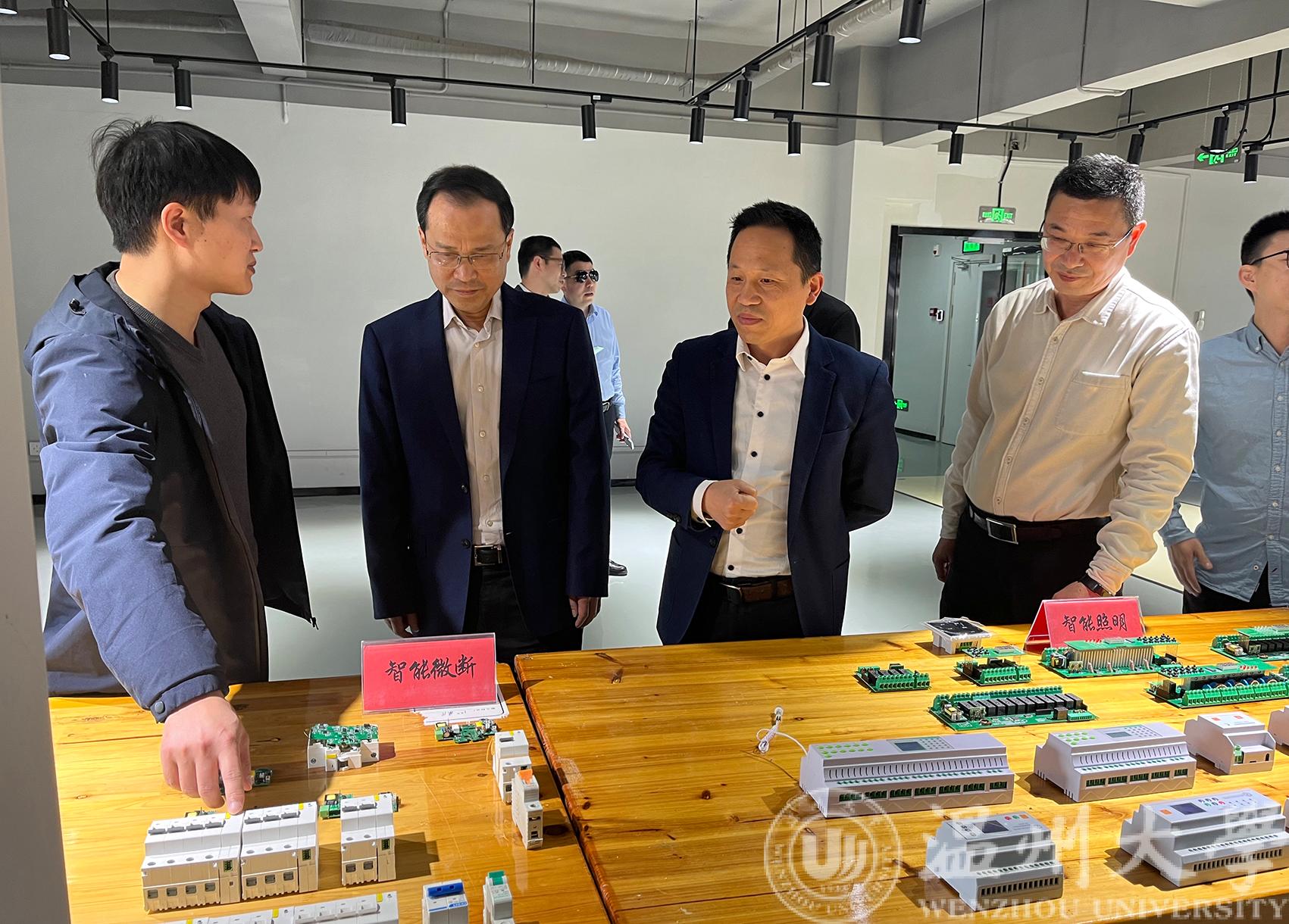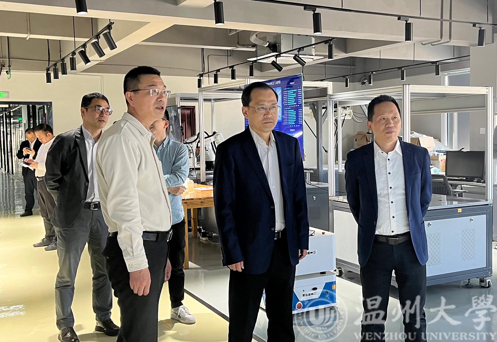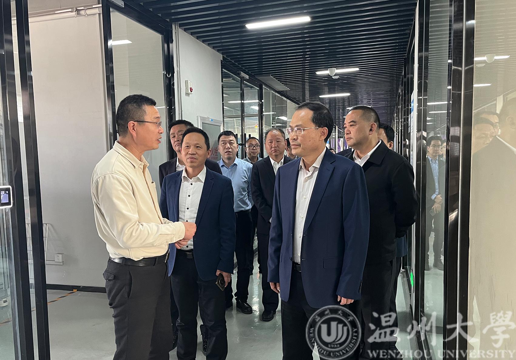 3月10日,温州市政协主席陈作荣一行来乐清调研科技创新和政协工作,莅临欧美无码 乐清工业研究院实地考察平台项目建设情况,欧美无码 副校长王舜、温州市科技局副局长朱勇敏、乐清市副市长叶序峰等陪同,研究院院长林振权、副院长吴自然等热情接待并汇报科技创新及服务企业工作。