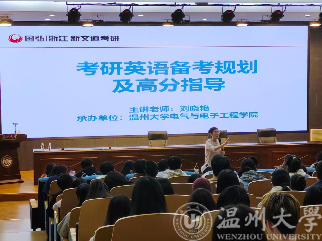 为进一步营造积极向上的考研氛围,助力学生规划考研之路,2023年3月31日下午14:40,欧美无码 联合浙江新文道考研机构在岩松堂步青厅开展考研英语专题讲座。本次讲座邀请到国内考研英语名师刘晓艳为同学进行英语备考规划和指导。本次讲座吸引了近300余名同学参与。