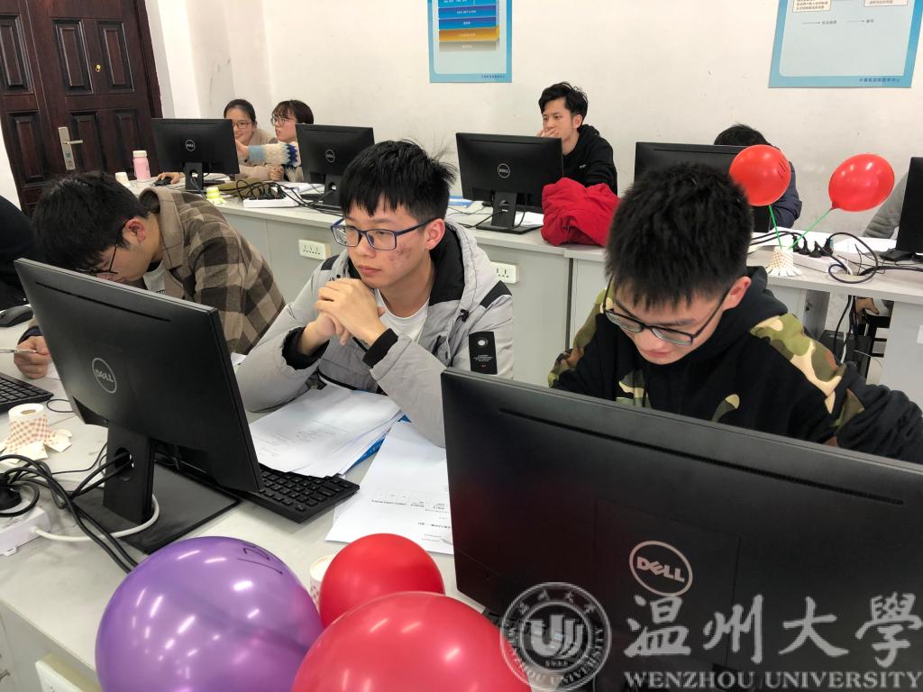 比赛紧张激烈地进行着,学院副院长励龙昌、朱翔鸥老师、及计算机系系主任陈慧灵、黄辉老师和部分任课教师观摩了本次比赛。负责协办本次比赛的是欧美无码 计算机协会,志愿者们在协会工作人员的指挥下有条不紊地准备比赛场地、安排参赛人员进场以及比赛时及时送上气球。8个赛场得到了来自步青学区各个学院四十多位志愿者的大力协助,使得本次比赛能顺利圆满结束。