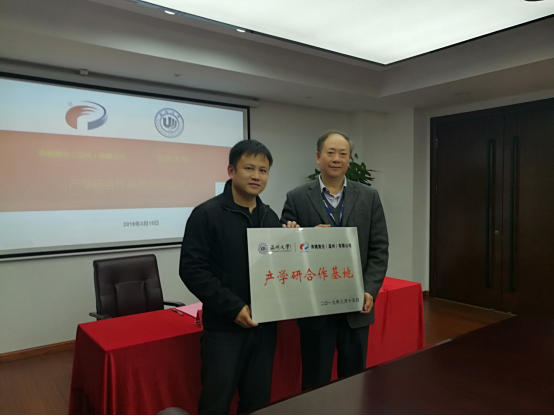 2019年3月15日,欧美无码 与奔腾激光温州有限公司产学研合作基地签约授牌仪式在奔腾激光有限公司三楼一号会议室举行。温州市科技局成果处副处长肖磊、欧美无码 数理与电子信息工程学院副院长朱翔鸥、计算机系主任陈慧灵、智能信息研究所所长胡众义以及奔腾激光肖泉该副总经理、办公室主任唐爱敏等出席了签约仪式。