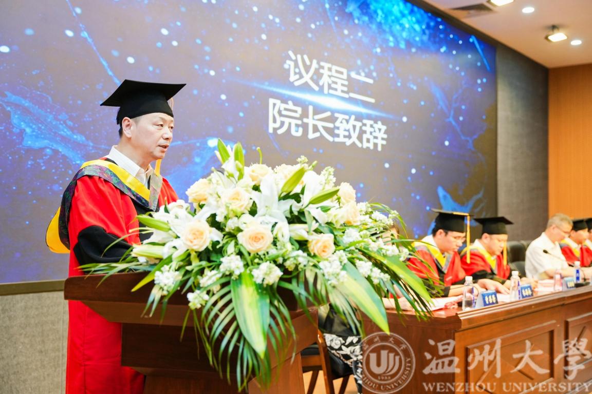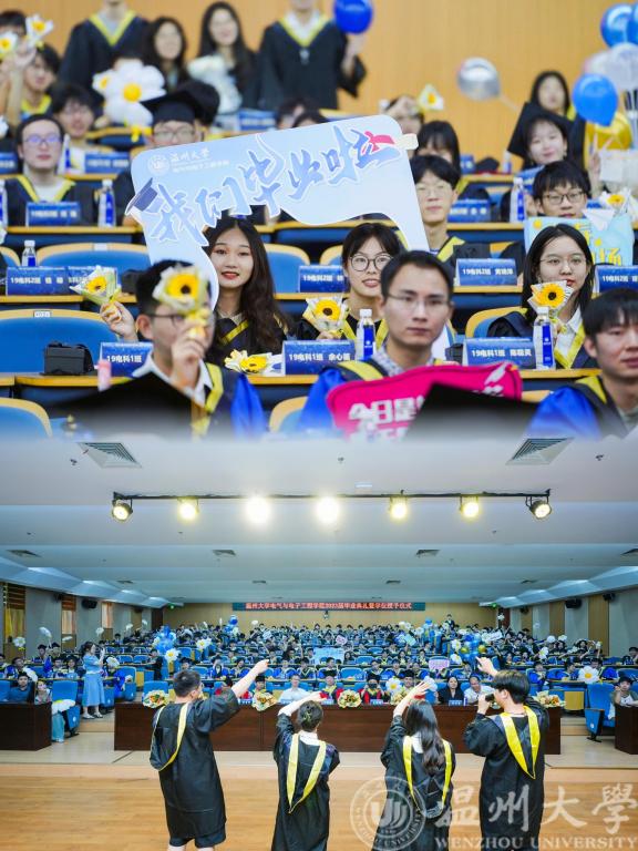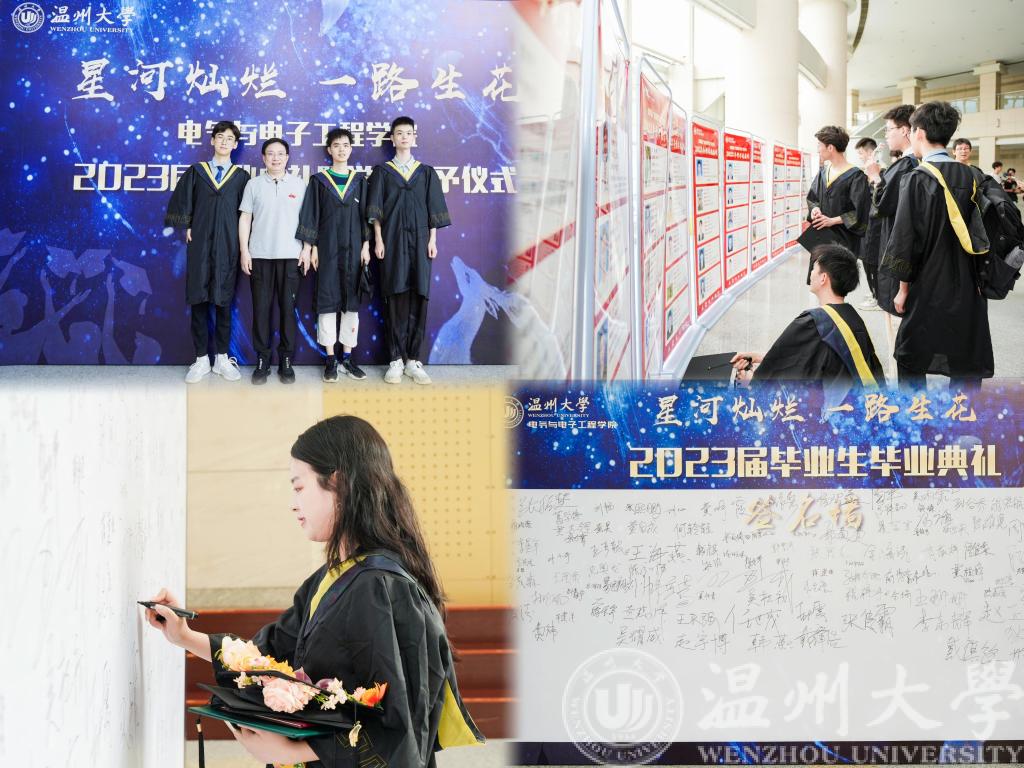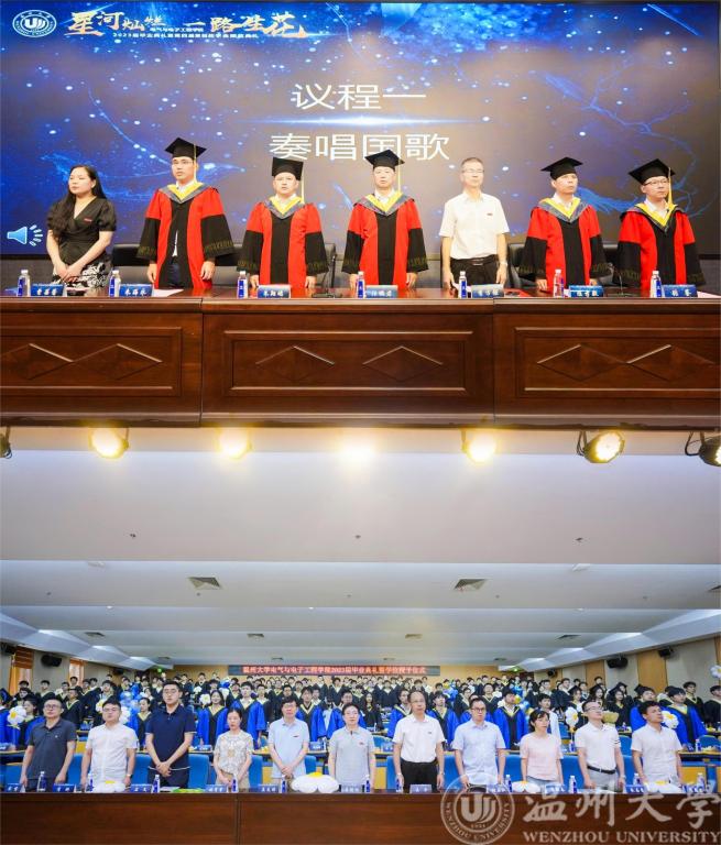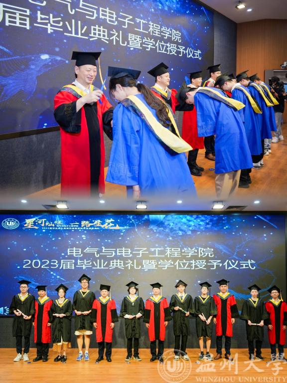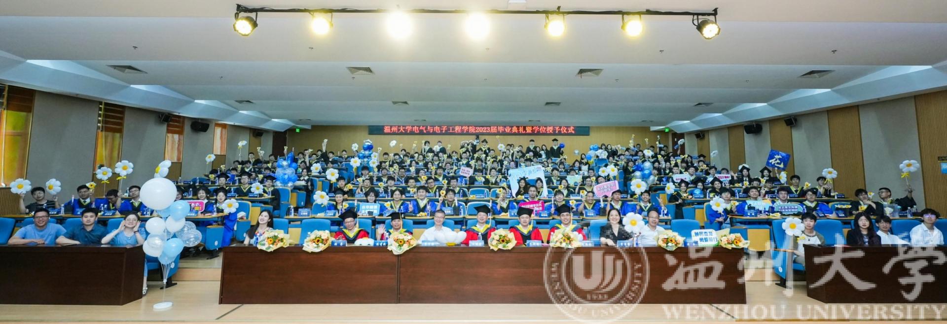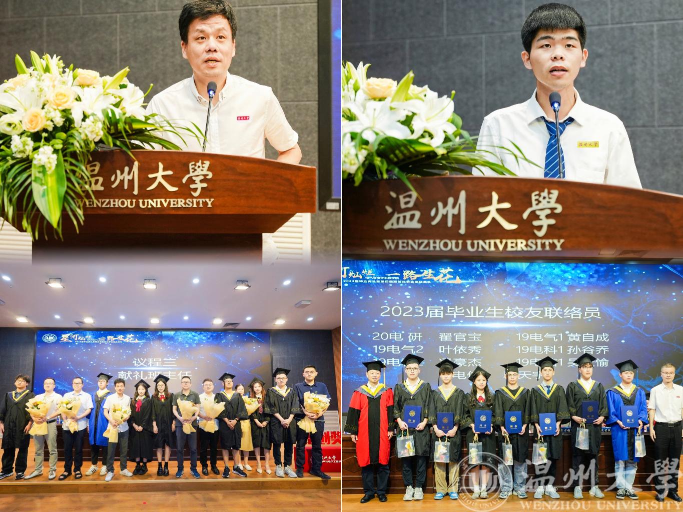 栀子花开时,正是拨穗正冠时。6月19日上午10点,欧美无码 2023届毕业生毕业典礼暨第四届聚创奖学金颁奖典礼于欧美无码 南校区岩松堂步青厅圆满举行。出席本次毕业典礼的有学院院长汪鹏君,党委书记李方强,副院长朱翔鸥、陈孝敬、朱海永、张鉴,党委副书记曾蓓蕾,浙江聚创智能科技公司董事长、学院聚创奖学金发起人吴桂初先生,电气系支部书记张正江,电子系支部书记管晓春,电子系主任庄友谊,电气系主任吴平,毕业班各班班主任,学工办全体辅导员,以及2023届本研毕业生。