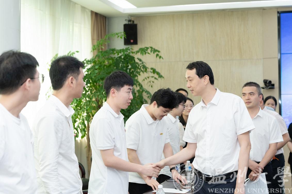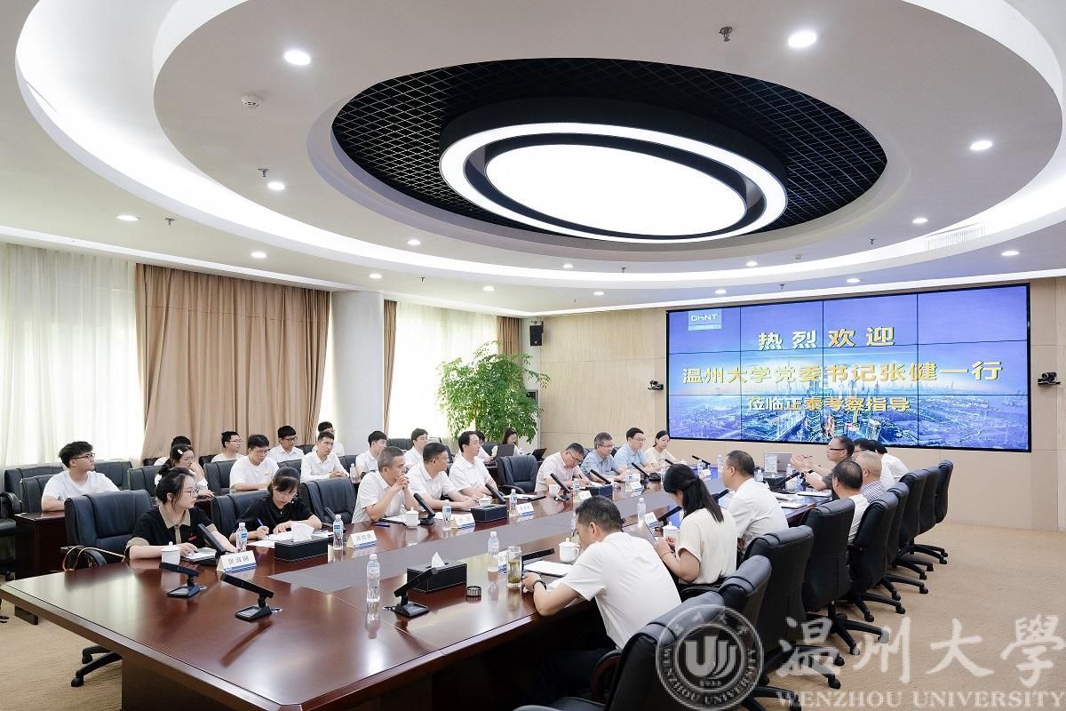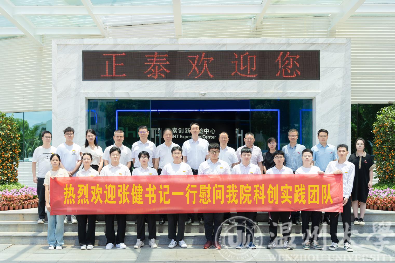 7月14日上午,欧美无码 党委书记张健来到正泰高科技工业园慰问欧美无码 “数字孪生技术”科创实践团队,乐清市副市长叶序锋,正泰集团党委书记、监事会主席吴炳池热情接待了张健书记一行。