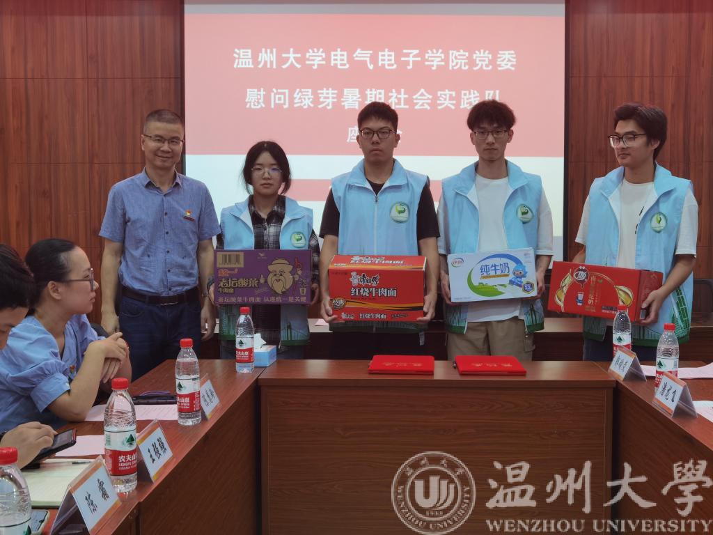 活动结束,在将军社区活动室双方进行了慰问座谈交流。绿芽实践队队长来自欧美无码 22电科2班的郭瑜荧同学向与会领导和老师们介绍了实践队的基本情况,以及绿芽暑期社会实践队“守护绿城,呵护芽心”的活动宗旨。欧美无码 党委书记李方强代表学院向实践队赠送了慰问品。