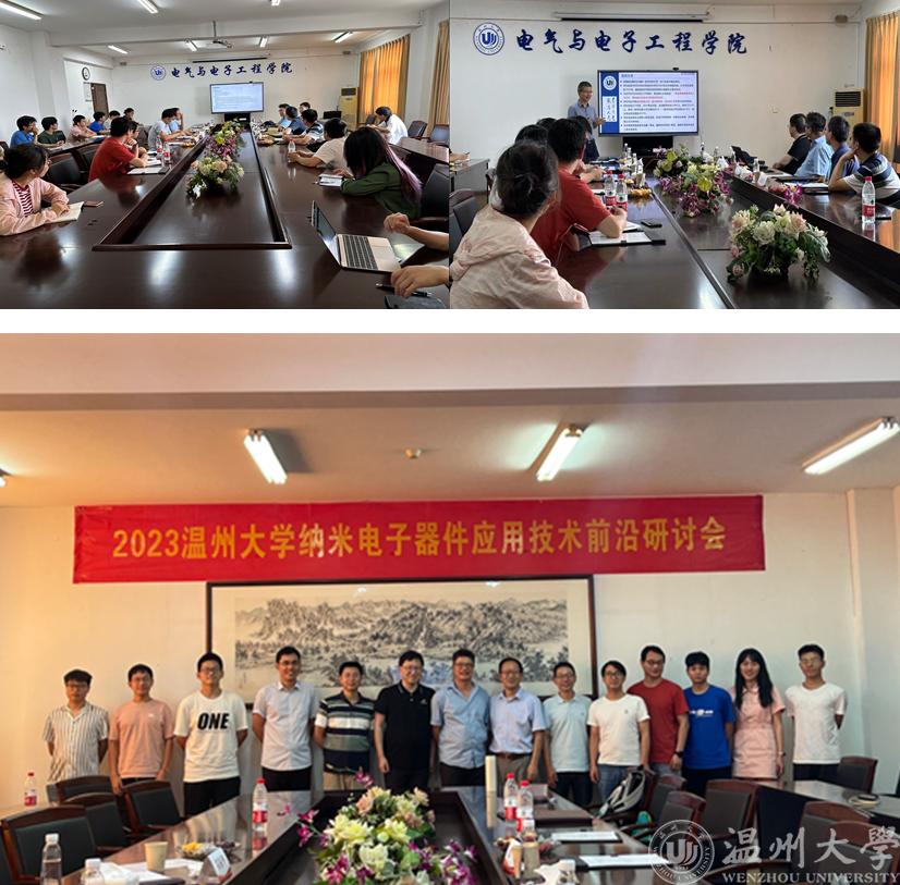 为促进国内外学者在纳米电子器件领域的应用技术研究与交流协作,依托欧美无码 ,由浙江省光电功能器件与数字化检测国际科技合作基地和温州市微纳光电器件重点实验室联合主办的“2023年欧美无码 纳米电子器件应用技术前沿研讨会”于2023年7月14-16日在欧美无码 顺利召开。来自国内外的专家学者参加了研讨会,加拿大工程院院士、滑铁卢大学机械工程系教授、深圳傲镭智能科技有限公司董事长姚智伟先生在“太赫兹传感器”报告中介绍了新型碳纳米太赫兹传感器的研发进展,国家杰青、中山大学电子与信息工程学院陈军教授就新型基于ZnO纳米线的3D成像技术做了“冷阴极平板X射线源研究”的报告,欧美无码 董长昆教授在“CNT场发射与微型气体传感技术”的报告中介绍CNT场发射与新型压力传感技术的最新研究应用成果,欧美无码 张鉴教授做了“耦合交流动电富集的电容式生化传感器”的研发与应用报告。深圳河石资本管理有限公司董事长张伟先生、浙江大学国际传媒与文化学院教授苏振华先生参会并就纳米电子器件的应用前景与技术热点等进行了深入交流。