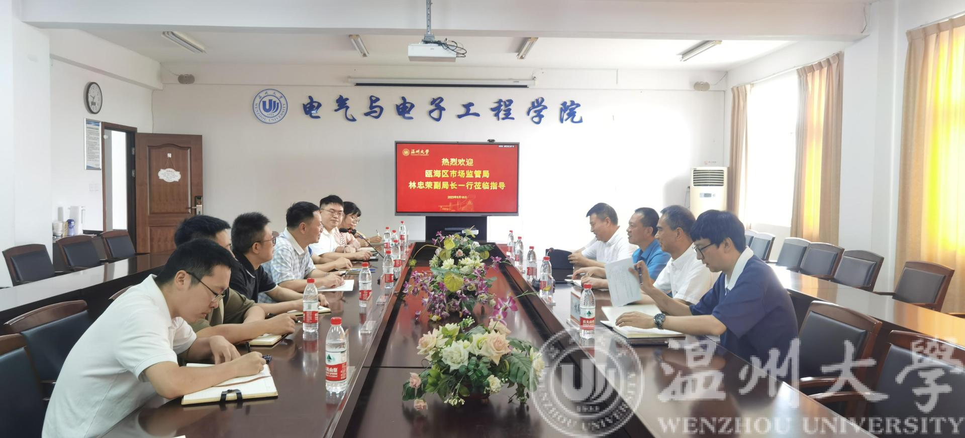 8月18日上午,瓯海区市场监管局林忠荣副局长一行莅临欧美无码 开展知识产权“产学研”交流工作。座谈会由院长汪鹏君主持,院长助理张鉴教授以及骨干教师出席。