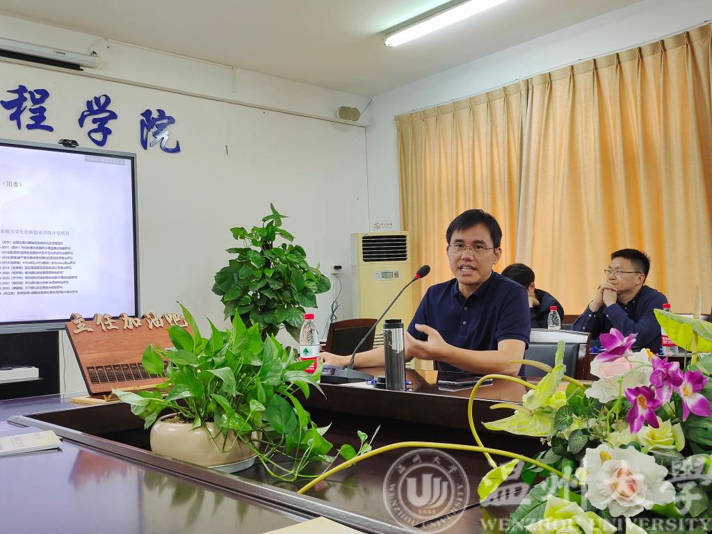 朱海永教授本次讲座的主题是《学生科创指导经历分享》,他主要结合自己多年来指导学生参加挑战杯、互联网+等竞赛的经验,以及自身科研工作经历,对指导学生参赛过程中面临的一些突出问题进行了讲解和分析。特别是他指出“好的项目要实行‘青蓝计划’,早一点选择好的苗子进入团队,进行培养”,入围国家级赛事项目要反复打磨,不断完善,才能取得好成绩。同时也要加强与外校专家的沟通,相互学习。