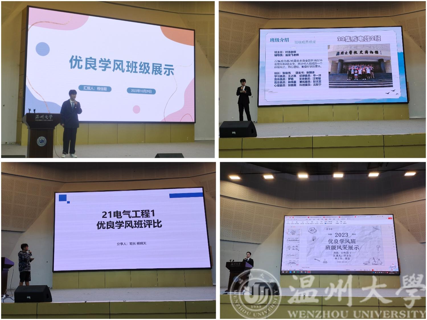 首先进行“优良学风班”评比,参与评比的班级代表先后登台展示班级风采,分别从班级的学习成绩、素质拓展、寝室文明等方面展示优良班风和卓越成就,体现了积极向上的态度和奋勇争先的精神。