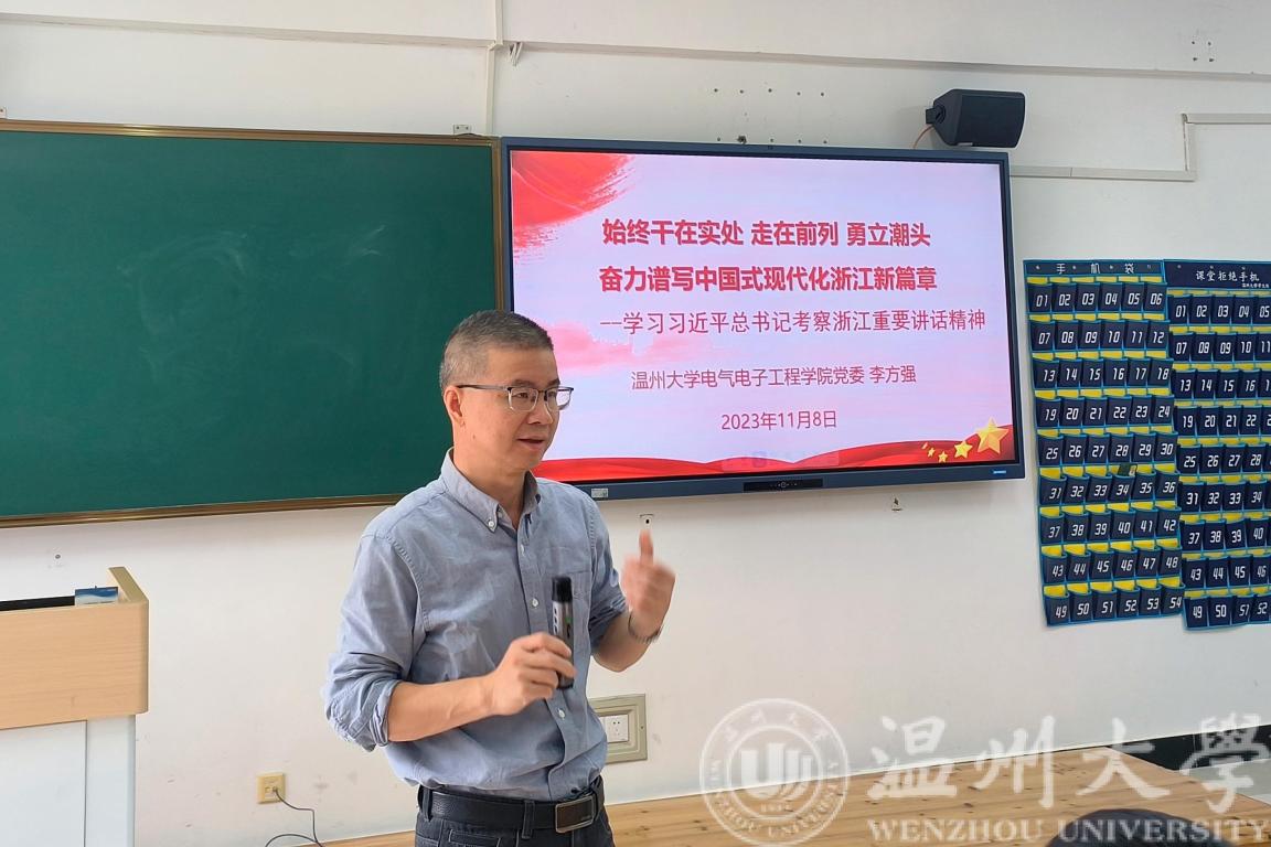 会议伊始,李方强书记带领全体教职工学习《始终干在实处 走在前列 勇立潮头 奋力谱写中国式现代化浙江新篇章——习近平总书记考察浙江重要讲话》精神,主要包括三个方面内容:习近平总书记对浙江的关怀、习近平总书记考察浙江足迹、习近平总书记考察浙江重要讲话精神。
