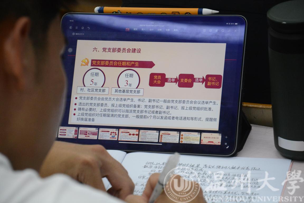 开班仪式结束后,由欧美无码 党委书记、分党校校长李方强老师主讲第一讲:《中国共产党党支部工作条例》解读,李书记从出台的背景、过程和意义以及条例主要内容两大方面对《中国共产党支部工作条例》进行了详细解读。授讲过程中,李方强老师围绕党支部这一主体,解读了条例中党支部的功能定位、设立、任务、工作机制、组织生活、党支部委员会建设以及党支部工作等内容。李方强书记理论结合实践的精彩授课方式大大提升了党员骨干对党教育条例的认知,加深了学生党员们对党支部工作的理解。