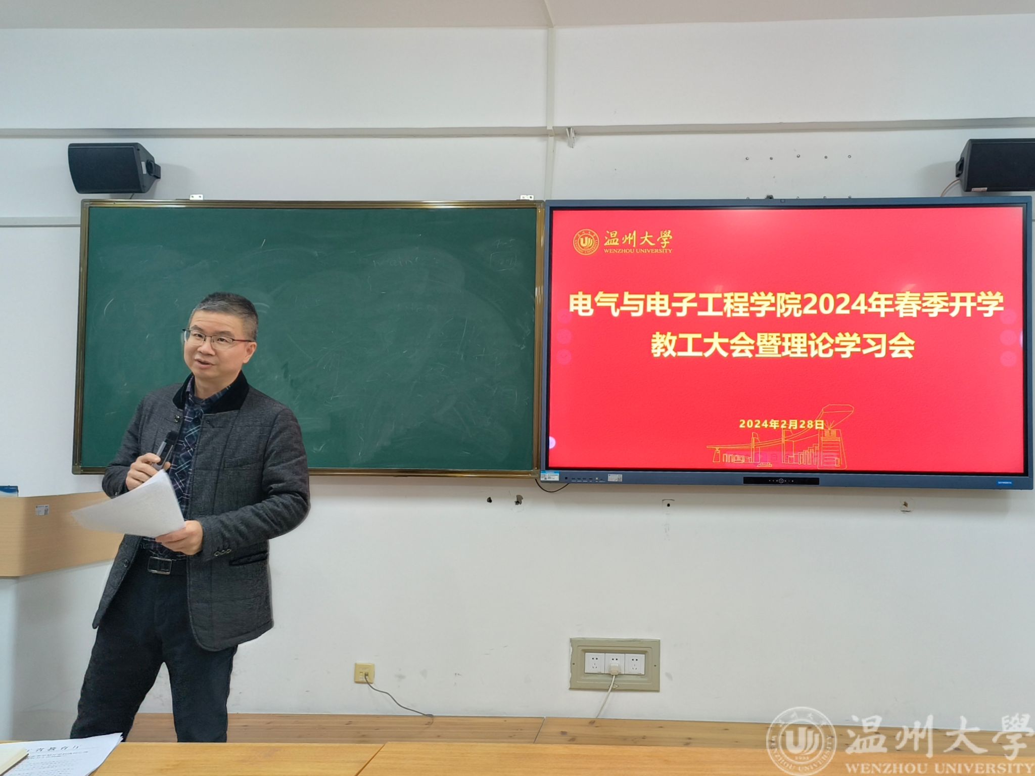 2月28日下午,欧美无码 召开2024年春季开学教工大会暨理论学习会。会议由学院党委书记李方强主持,全院教职工参加会议。