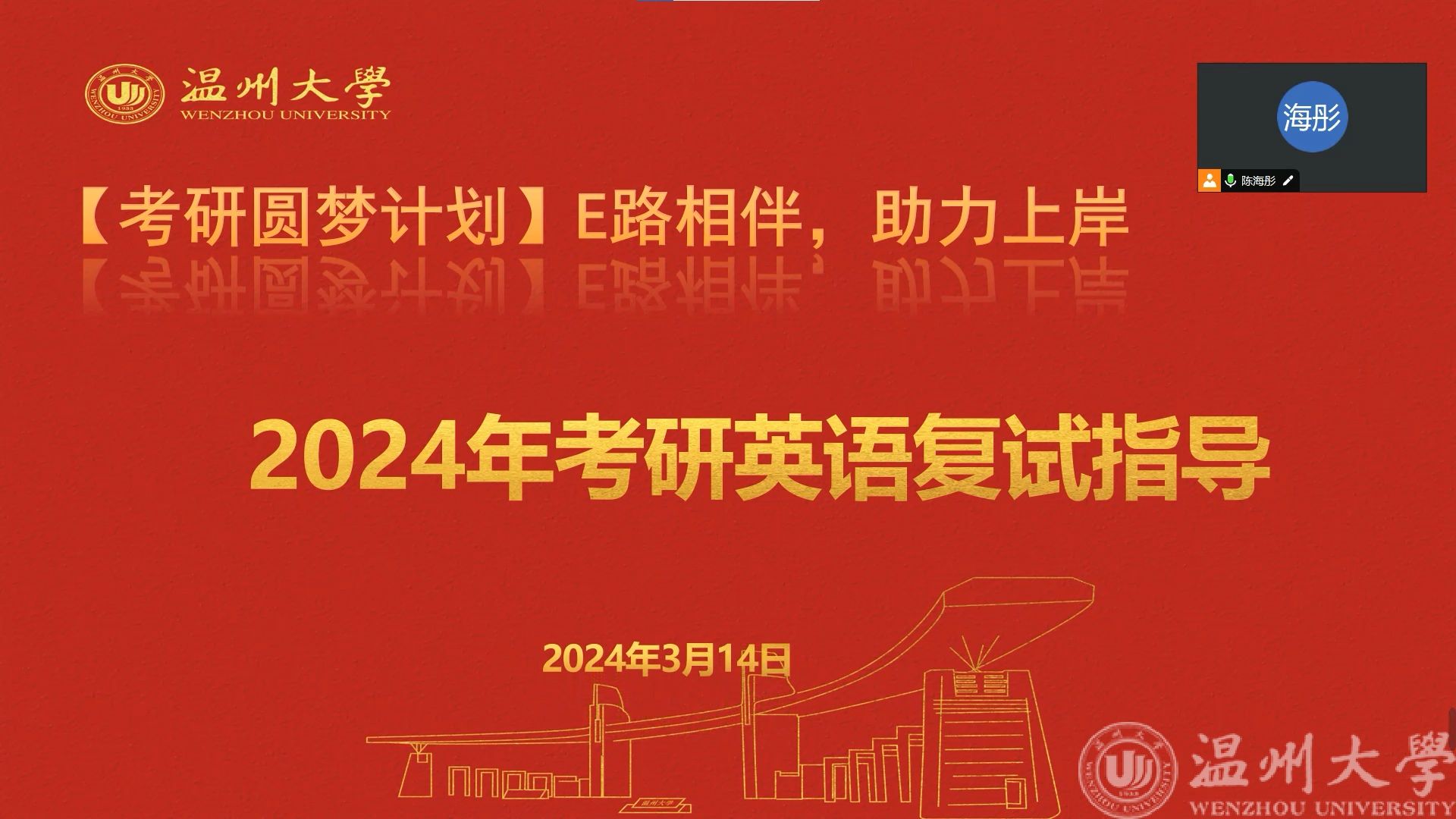 欧美无码 一直高度重视学生的考研准备工作,通过举办各类考研辅导、复试经验分享活动,为学生提供全方位的支持。近年来,外国语学院教工第二党支部的“E路有你”公益辅导团队一直致力于指导欧美无码 学子考研英语复试,帮助他们顺利圆梦。去年,欧美无码 有十余名学生参与该团队王素娟老师两次英语复试的线上指导,助力十余位同学顺利上岸;3月13日下午,“E路有你”公益辅导团队叶小芳、苏玉洁、冯小芳和陈博栋四位老师,莅临欧美无码 为同学们提供线下考研英语复试指导。他们的有力指导让同学们对接下来的英语复试环节充满信心。