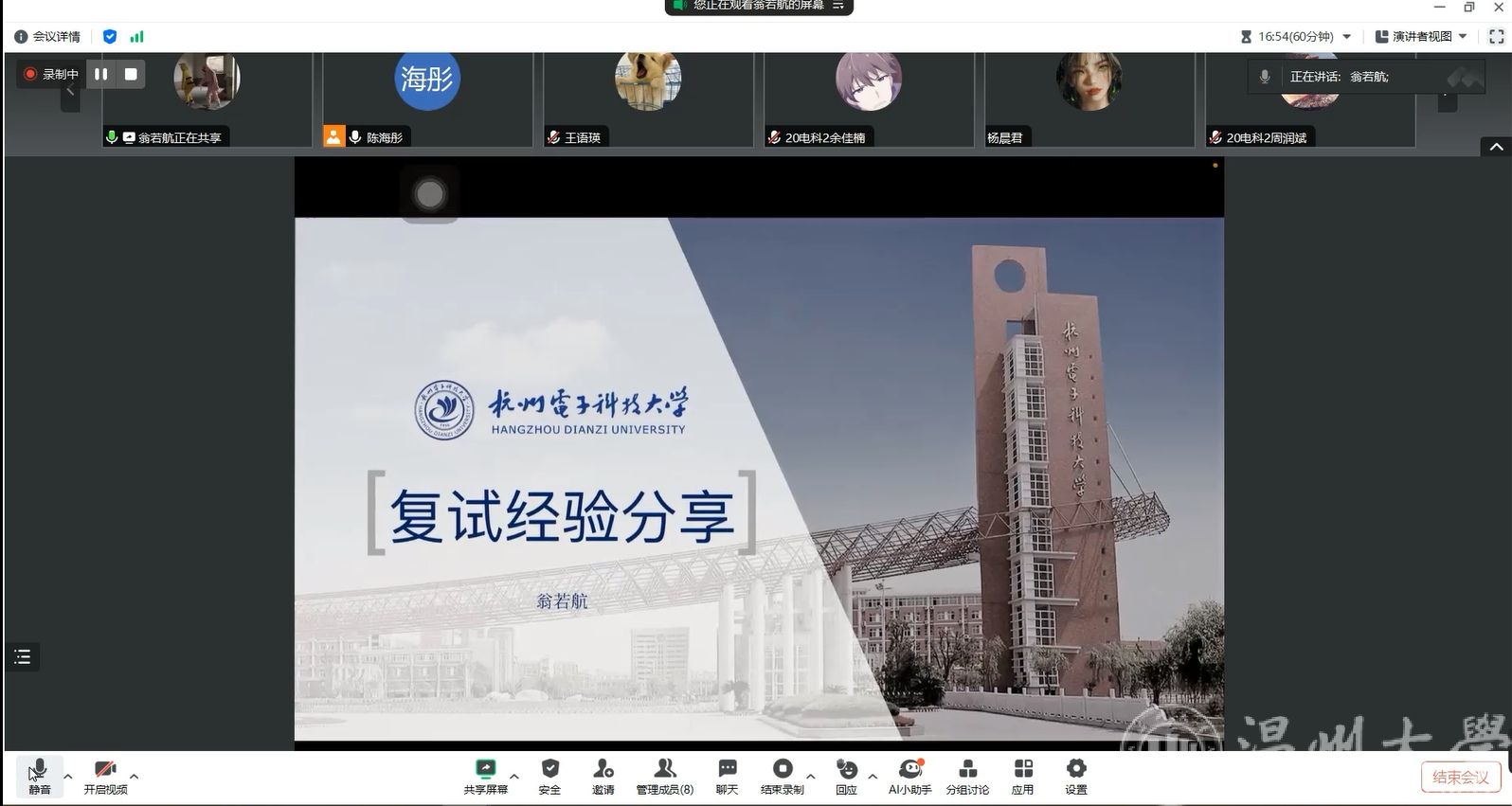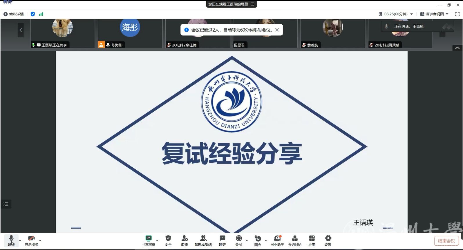 2024年3月14日和3月15日晚上,欧美无码 分别举行了2024年考研复试经验分享“杭电专场”和“上海电力专场”两场交流会。邀请了欧美无码 2023届毕业生,目前就读于杭州电子科技大学的王语瑛、翁若航同学以及就读于上海电力大学的叶子奇同学,为报考上述院校的学子进行复试经验分享。