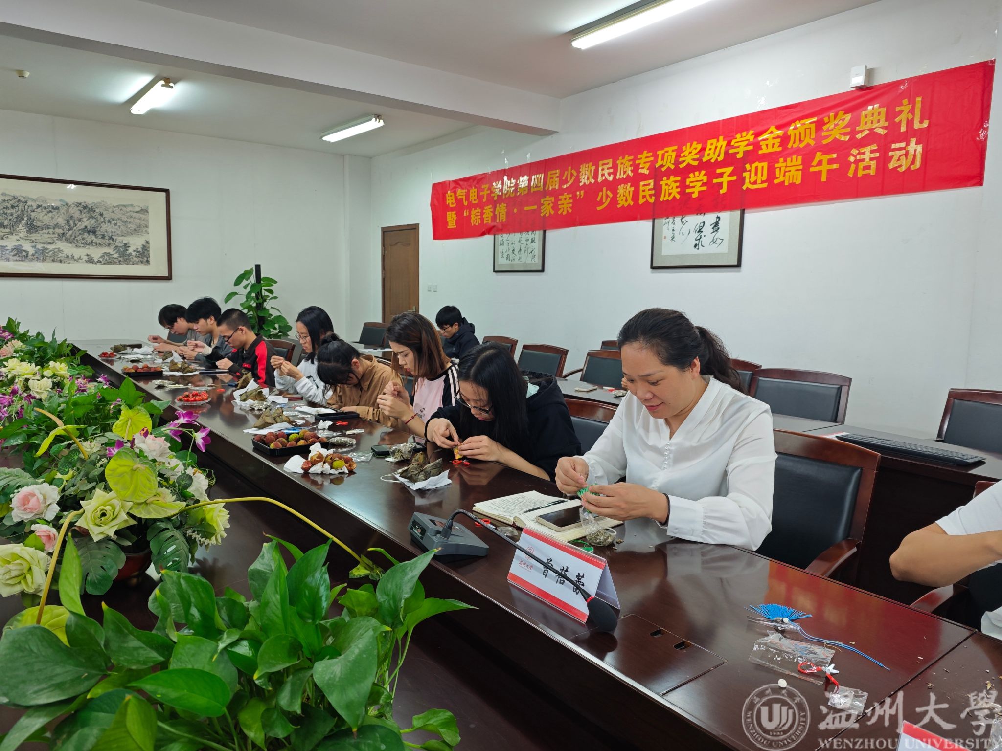 夏意渐浓,粽叶飘香,中华民族的传统佳节——端午节悄然而至。为庆祝这一承载深厚文化底蕴的传统节日,6月5日下午14:00,,欧美无码 在1A-502举办第四届少数民族专项奖助学金颁奖典礼暨“粽香情·一家亲”少数民族学子迎端午活动。学院党委副书记曾蓓蕾、学工办主任廖晓安及学院少数民族学子出席本次活动。活动由学工办辅导员陈海彤老师主持。