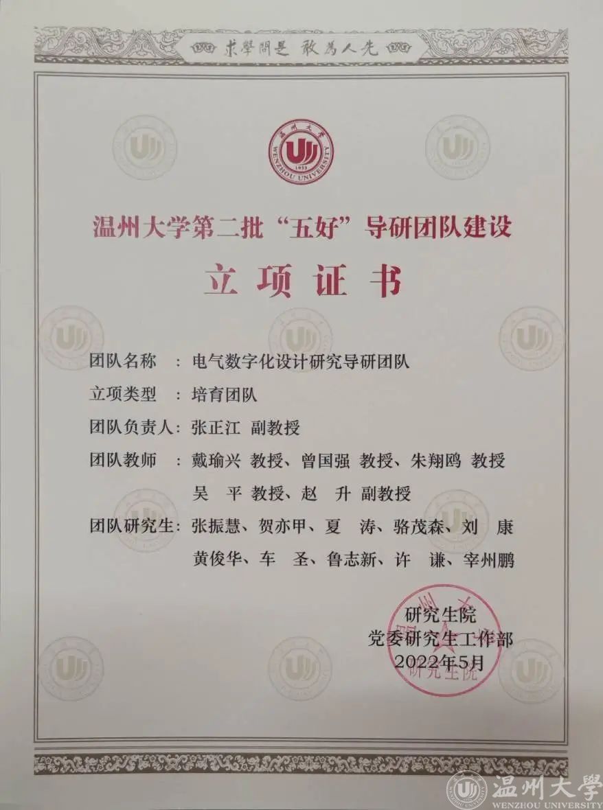 近5年指导学生获浙江省“新苗计划”项目、“大学生创新创业训练计划”项目和“研究生创新基金”项目共9项,指导研究生获得中国研究生创“芯”大赛全国决赛三等奖5项、团队优秀奖1项,指导本科优秀毕业论文2篇;所在的集成电路与智能系统导研团队荣获欧美无码 第一批“五好”导研团队。