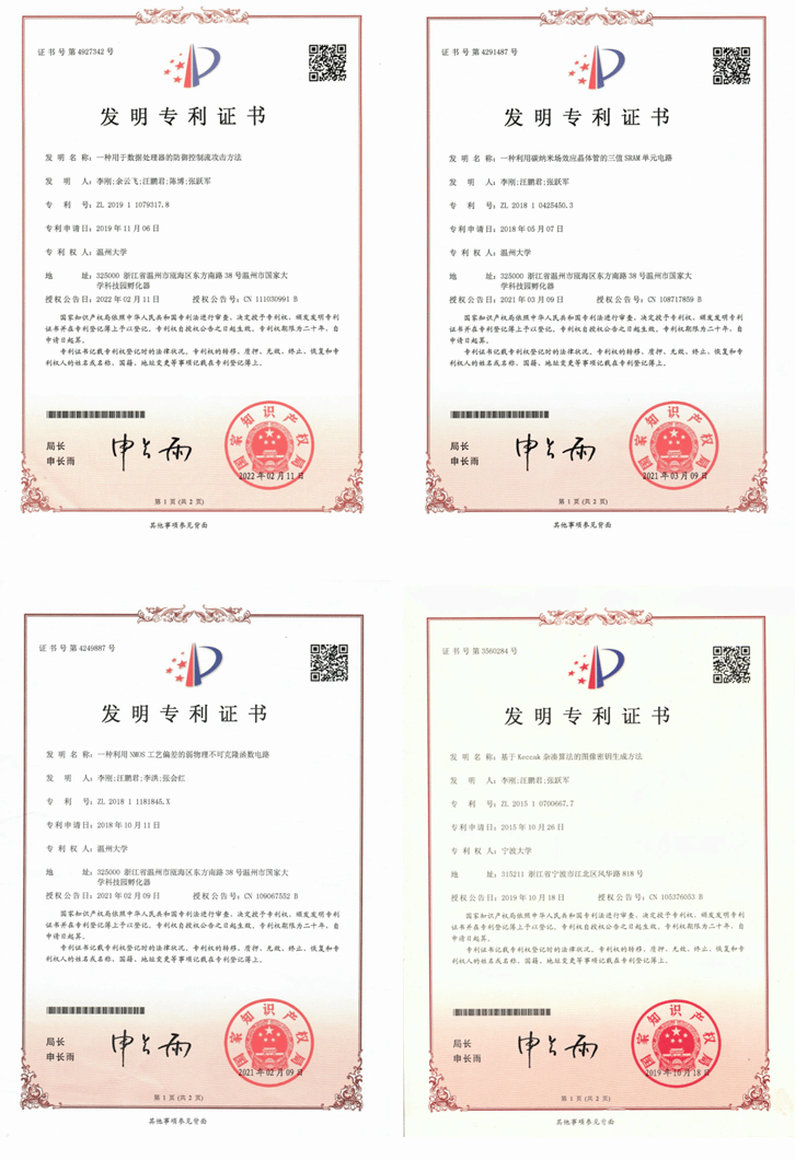 李刚同志在科研工作方面,勇于创新,思路开阔,科研能力突出,带领研究生工作在科研第一线。在科研工作中,不断探索科研新思路,追踪科技前沿,主要从事安全芯片攻击与防御技术、集成电路设计与应用等方向的研究。