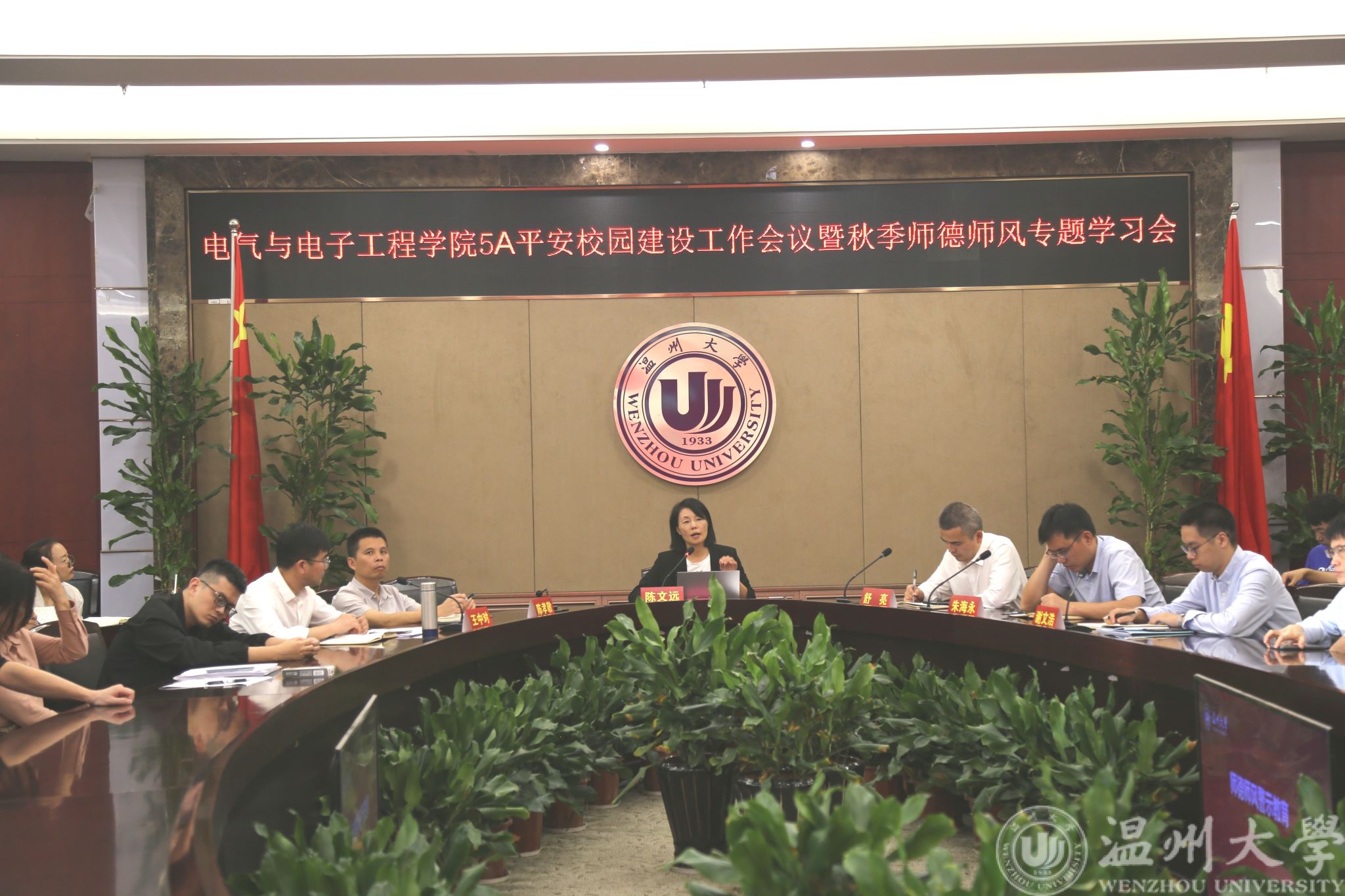 10月23日下午,欧美无码 在南校区岩松堂白鹿厅召开争创5A等级平安校园建设工作暨秋季师德专题教育会议。学院班子成员、全体教职工参加会议。会议由学院党委书记陈文远主持。