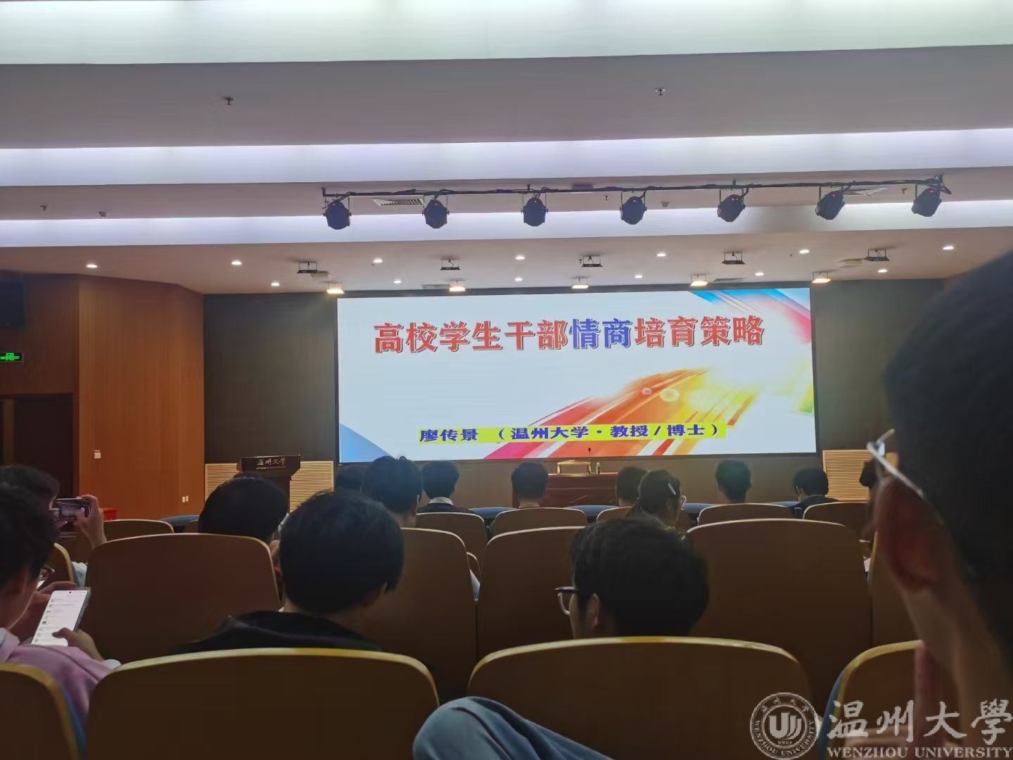 2024年11月4日晚18:30,欧美无码 大一全体学生干部在岩松堂步青厅开展本学期心理幸福课。本次课程由廖传景教授主讲,此次培训聚焦于一个至关重要却常被忽视的主题——学生干部的情商培育。廖老师以其深厚的学术底蕴和丰富的实践经验,生动诠释了情商在学生干部成长与发展中的不可替代作用。