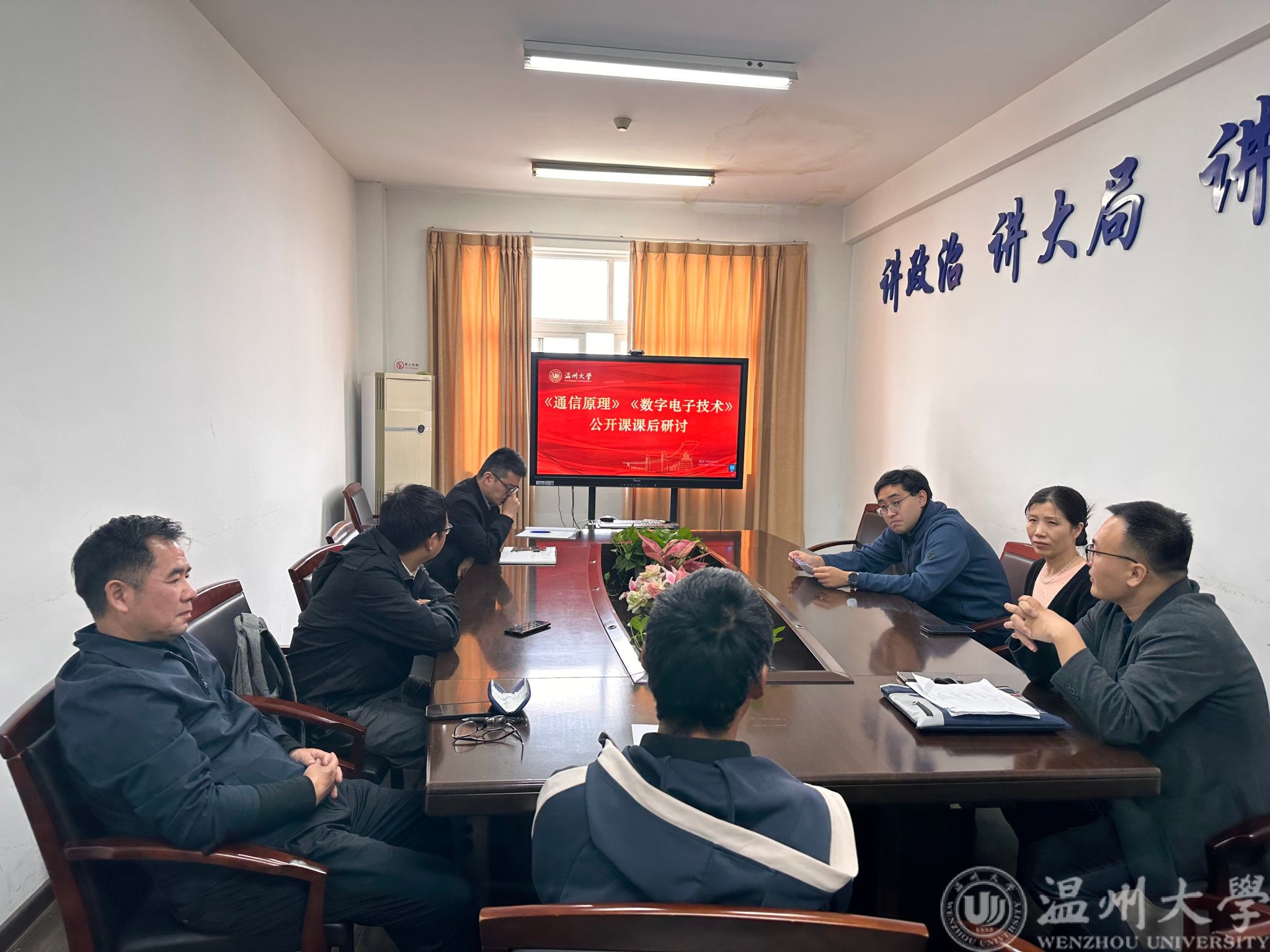课后,老师们在1A504会议室进行了评课。大家认为几位老师的课程设计合理、节奏适中、内容生动、声音洪亮,并融入了课程思政元素,同时也对几位老师提出了利用板书开展教学、结合实际案例进一步丰富内容、课题环节增加学生的参与性等建议。