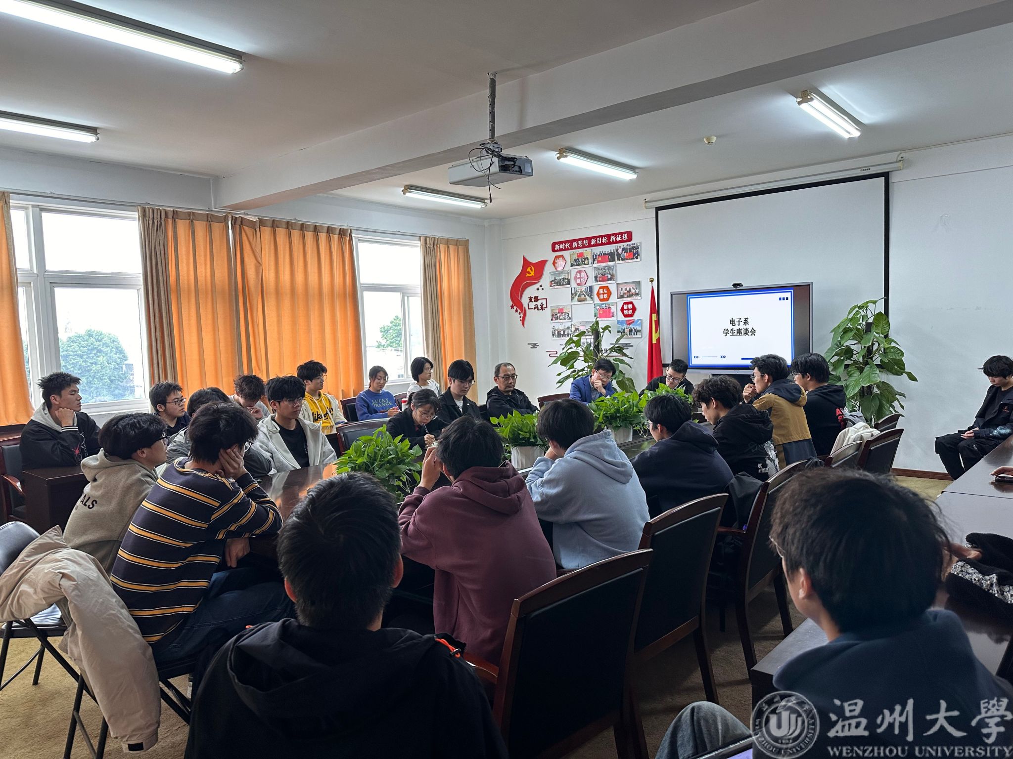 为深入了解学生学习情况,进一步加强教学质量监控,提高人才培养质量,11月22日,欧美无码 电子系在1A512会议室召开了本学期期中教学检查学生座谈会。会议由电子信息科学与技术专业负责人庄友谊老师主持,电子系党支部书记、学院教学督导管晓春,电子系副主任施一剑,实验中心主任宋元平,教务科孙双老师以及各班级代表参加。