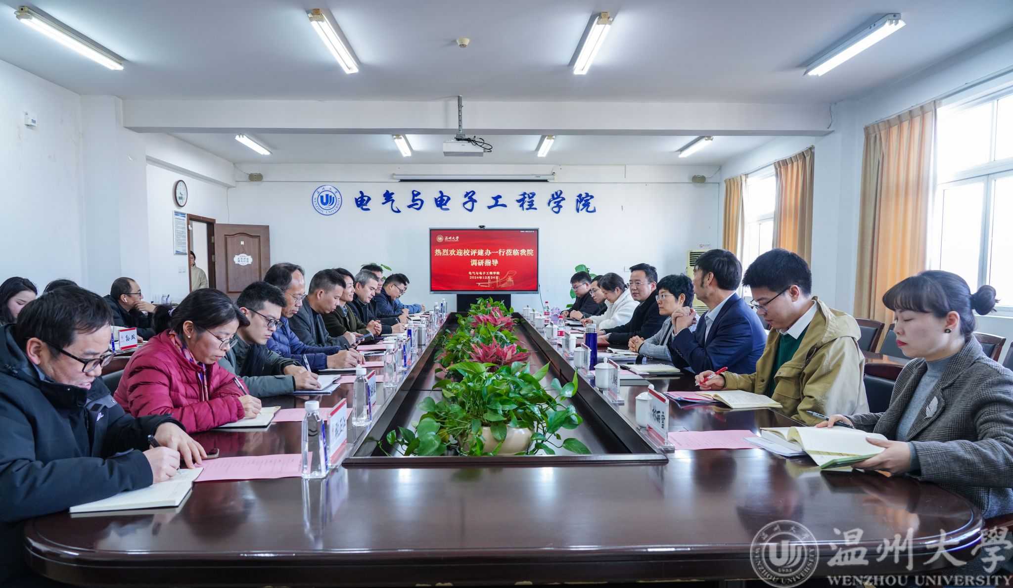 12月24日下午,欧美无码 本科教育教学审核性评估评建办公室一行莅临电气电子学院,对学院的本科教育教学审核评估工作进行指导与交流。学院班子成员、系主任、科室负责人、学院督导、支部书记等参加会议。