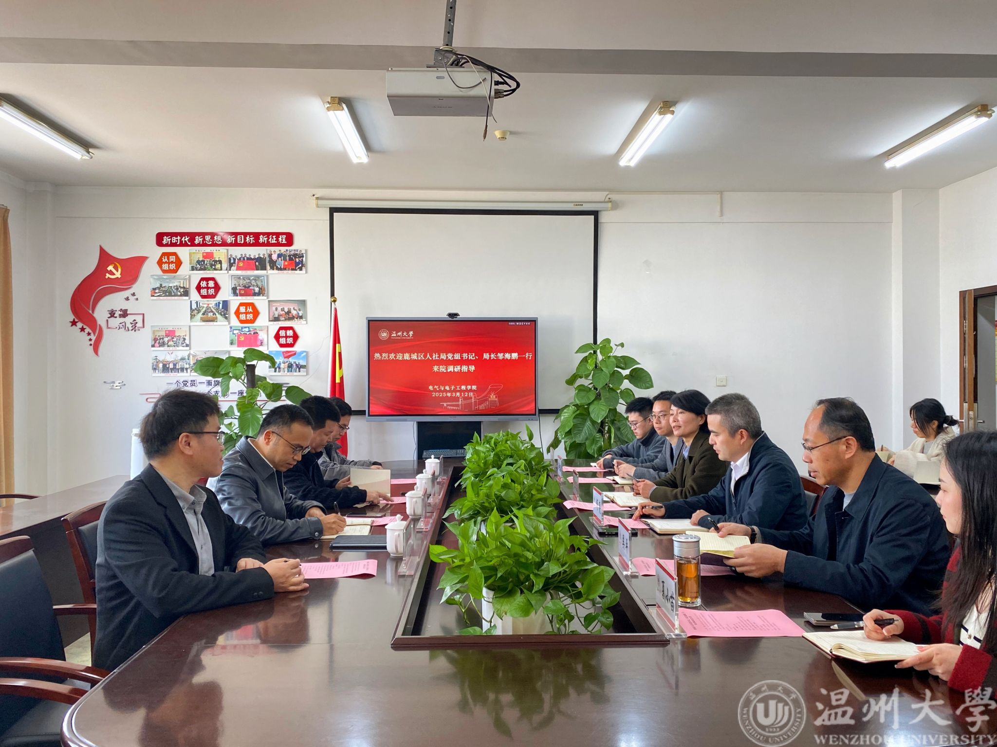 舒亮副院长详细介绍了学院办学概况、发展特色以及近年来在人才培养、学科科研、服务地方等方面取得的业绩成效。他表示,学院将深入贯彻落实2025年温州“新春第一会”精神,在前期合作的基础上,充分发挥学院学科和专业优势,持续提升学生培养质量,增进与鹿城区的互动交流,进一步深化合作,为温州加快打造高质量发展建设共同富裕示范区市域样板提供智力支持和人才支撑。