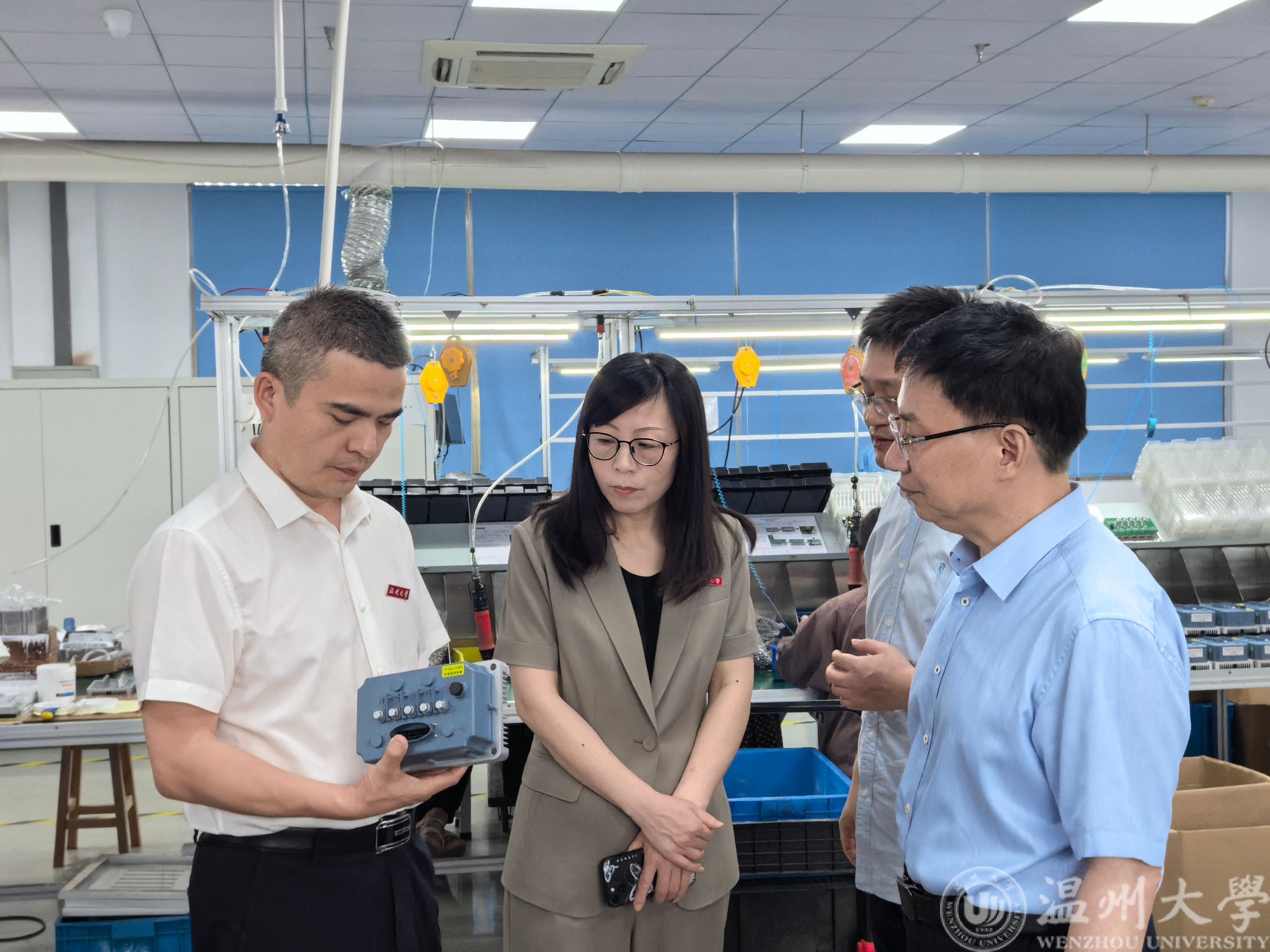 7月11日上午,校党委委员、宣传部部长吴静来到浙江聚创智能科技股份有限公司,看望慰问电气电子学院“深蓝引擎”暑期社会实践队的师生,并开展访企拓岗活动。校团委及学院相关人员等一同参加活动。