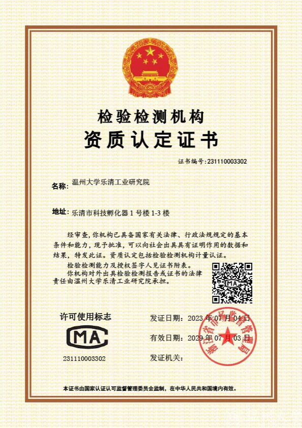 服务乐清本地建设国家级检测资质CNAS、CMA的全电流等级、全项目覆盖EMC、交直流试验能力实验室。2025年经过进一步的实验室复评、扩项及变更的现场评审,温大工研院成功新增三项检测能力授权,包括:直流断路器短路分断能力、接触器接通分断和约定操作性能、继电器短路分断能力。