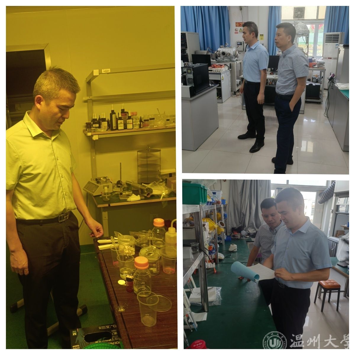 为切实保障新学期教学科研工作安全有序开展,进一步强化实验室安全管理,2025年9月8日中午12时30分,舒亮副院长、陈孝敬副院长会同实验中心主任宋元平,率实验教学中心相关工作人员,对全院教学、科研实验室进行了全面、细致的安全专项检查。