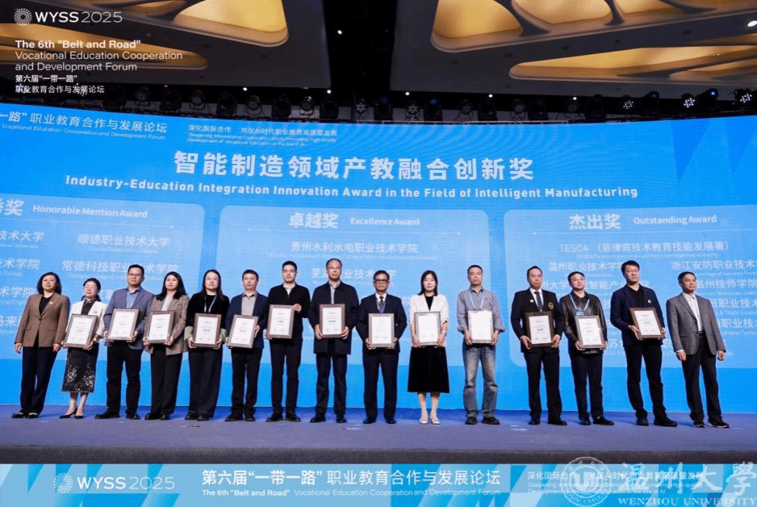会议期间,产业学院荣获“智能制造领域产教融合创新奖—杰出奖”,该奖项是对产业学院在推动人工智能技术赋能教育、深化产教协同育人方面建设成效的充分肯定。