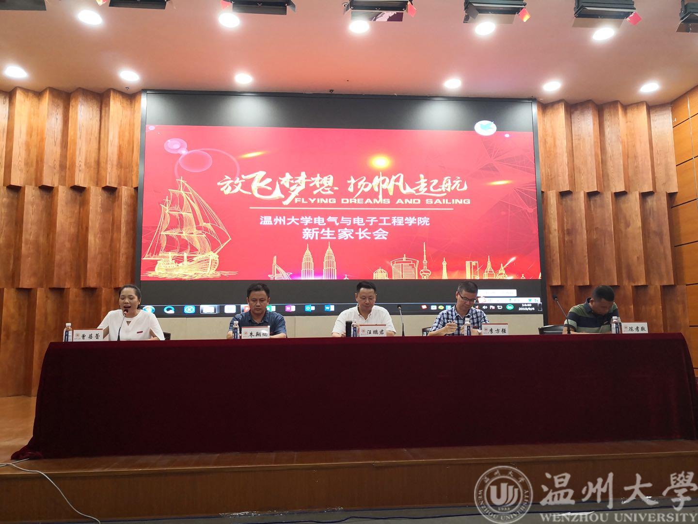 接下来,电气系主任吴平和庄友谊老师分别向新生家长们介绍了电气工程自动化与电子信息科学与技术专业。吴老师具体分析了电气专业的专业特色与专就业前景,展示了本专业的科教及产教融合成果,强调了自主学习在大学学习中的重要性。庄老师详细说明了电科专业的毕业去向与就业形势,重点提及了考研对本专业的优势,鼓励学子们积极考研。之后,为进一步加强家庭教育与学校教育的合力,从而进一步促进学生的成长成才,会议还安排新生各班班主任和家长代表依次上台,举行“家校共育签约仪式”。