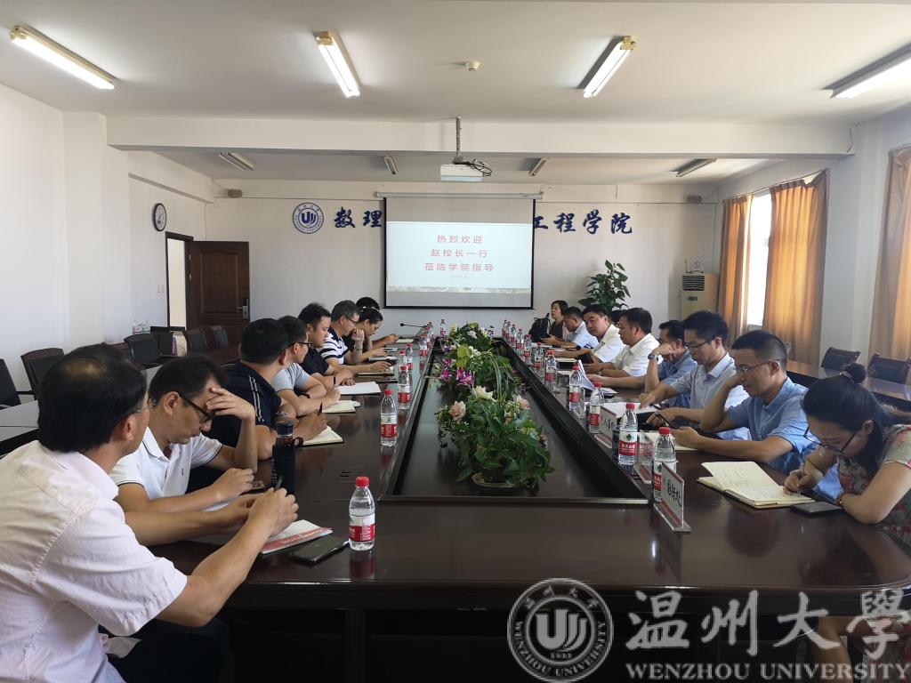 9月20日下午,校长赵敏,副校长薛伟、钱强,率教务处、研究生院、国际处、学生处、人事处、计财处、国际教育学院等部门负责人莅临欧美无码 开展调研指导工作并召开校长现场办公会。学院班子成员、办公室主任、系主任、系书记、实验中心主任等参加座谈会。座谈会由学院党委书记李方强主持。