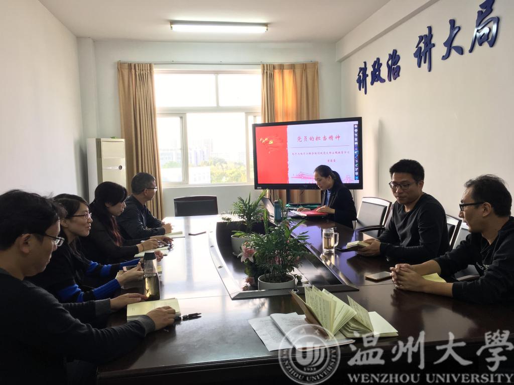 10月30日下午,欧美无码 行政教工党支部“不忘初心、牢记使命”集中学习会在学院1A504会议室召开,支部书记曾蓓蕾为支部党员作题为《党员的担当精神》主题教育专题党课。