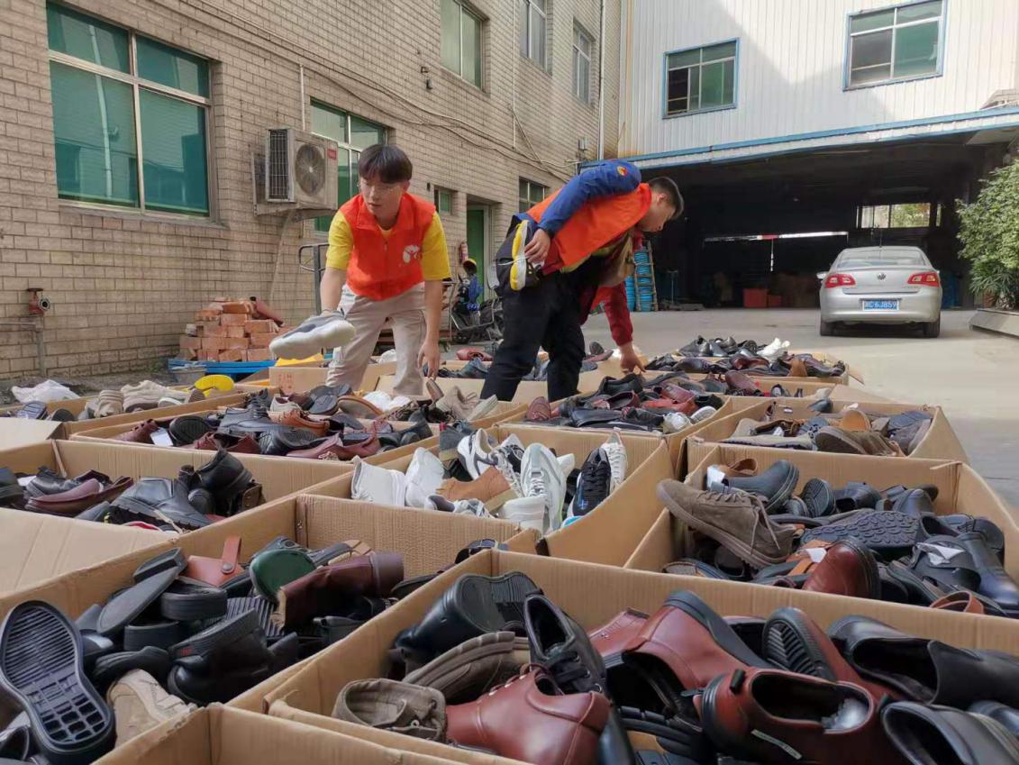 2019年11月2日7点整,四位欧美无码 的一八二义工志愿者们正马不停蹄地赶往30多公里外的瑞安莘塍,开展“缘来单脚鞋”公益活动。他们今天的任务是:前往春达鞋业接收一千多只捐赠的样品鞋,整理清洁后,再发往辽宁海城。