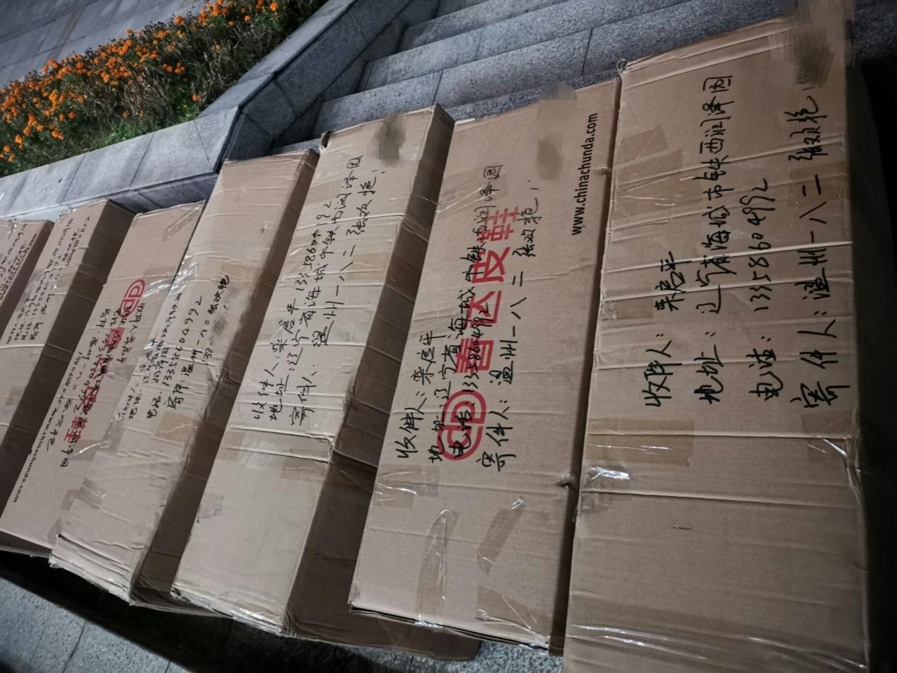 经过四个多小时的整理和清洁,共计1120只精美的样品鞋整整装满了十六只大箱子。为了让单脚人早日收到鞋子,“缘来单脚鞋”的志愿者们连续作战,连夜装车发货。