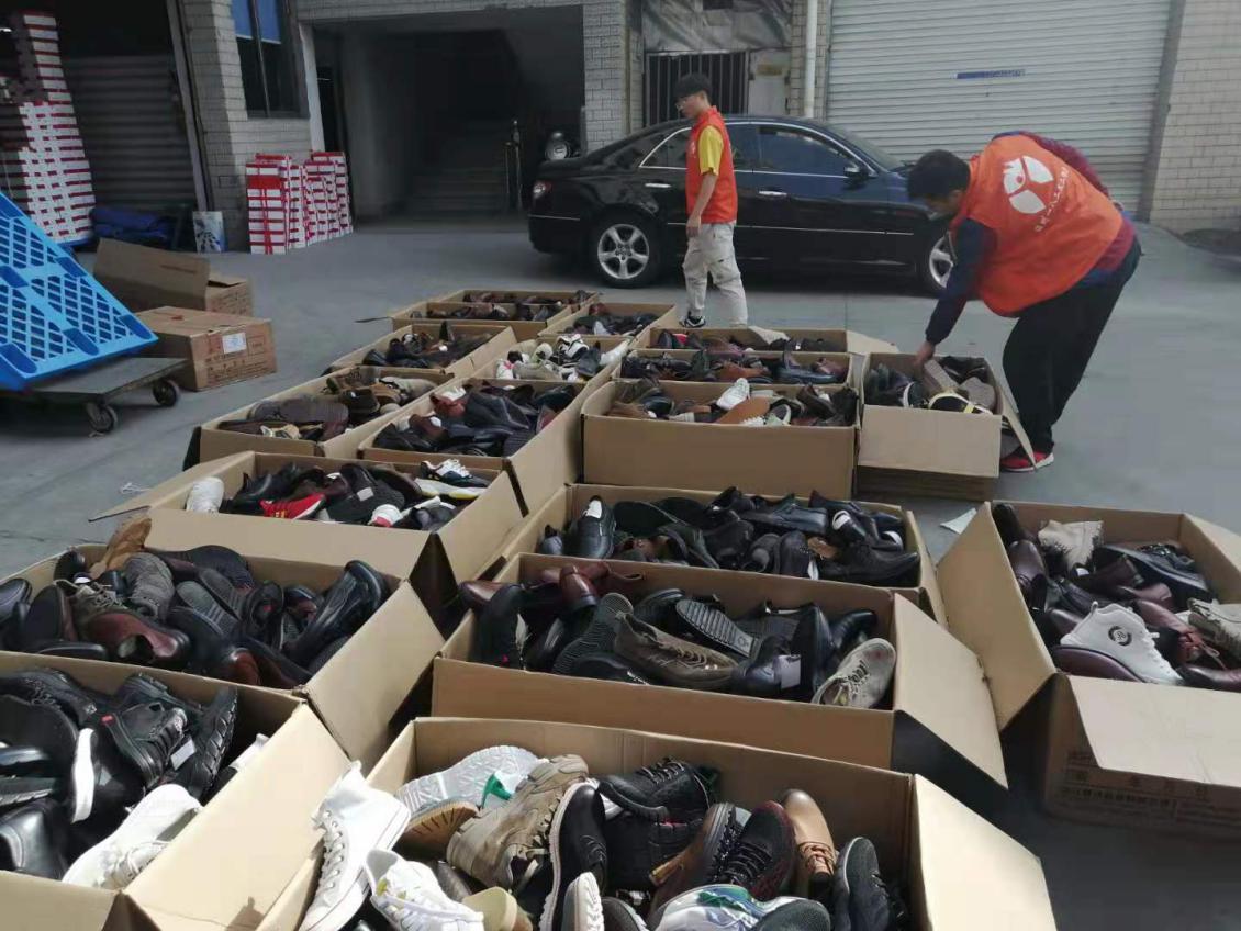 鞋子的整理、包装及搬运工作是十分辛苦的,经过一个多小时的整理,1000多只鞋子装满了19只大箱子,大家虽汗流浃背,心里却有一股暖暖的成就感。