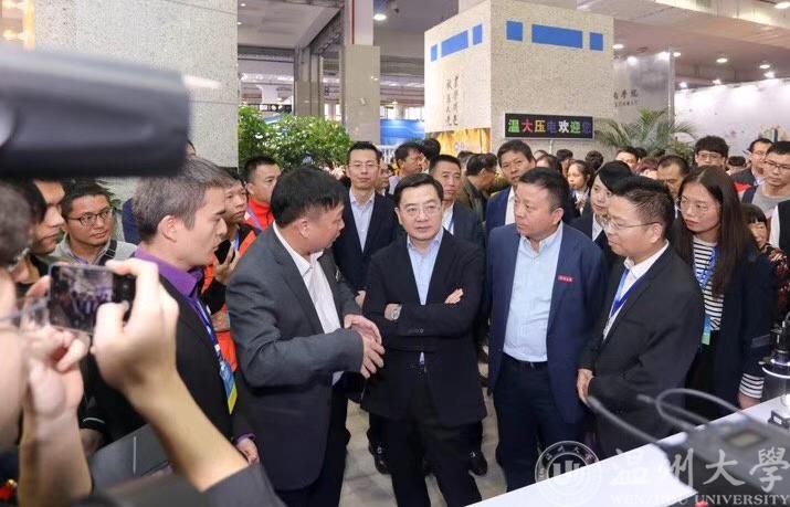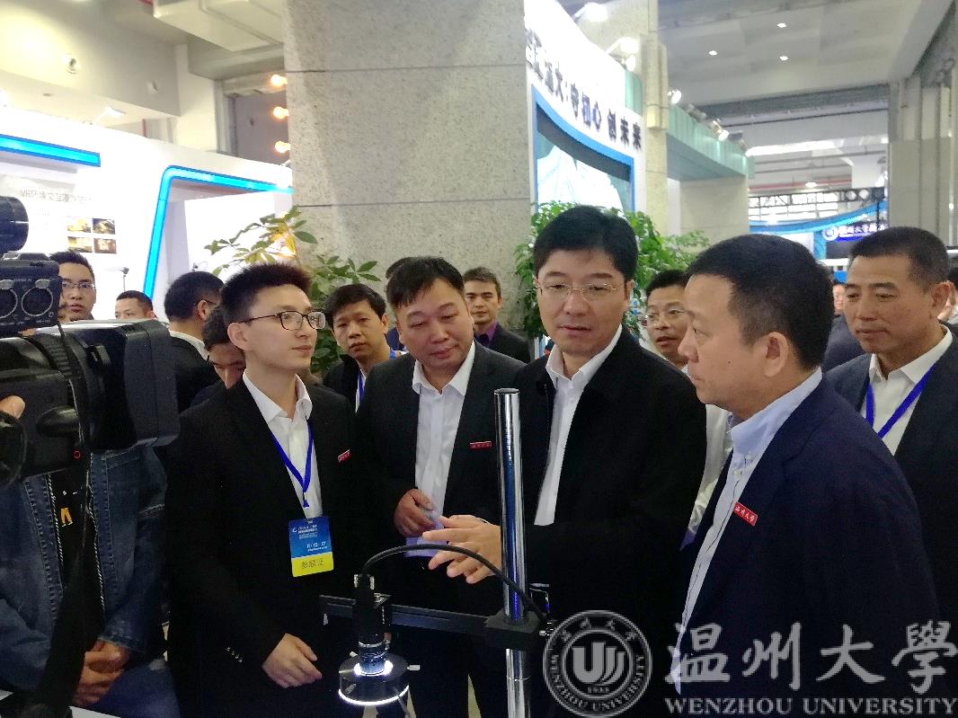 11月15日,由浙江省人力资源和社会保障厅、温州市人民政府主办的2019浙江•温州创业创新博览会在温州国际会展中心隆重开幕,本届创博会以“双创热浪推动高质量发展”为主题。欧美无码 作为院校创意展区的参展单位之一,以“智汇温大:守初心 创未来”为主题,规划了“智能科技”“文化创造”两大模块。欧美无码 的两项作品“低压电器数字制造孪生车间及系统”、“智能循迹小车”项目参加了本次展会,并且受到了省、市和欧美无码 各级领导的关注和肯定。