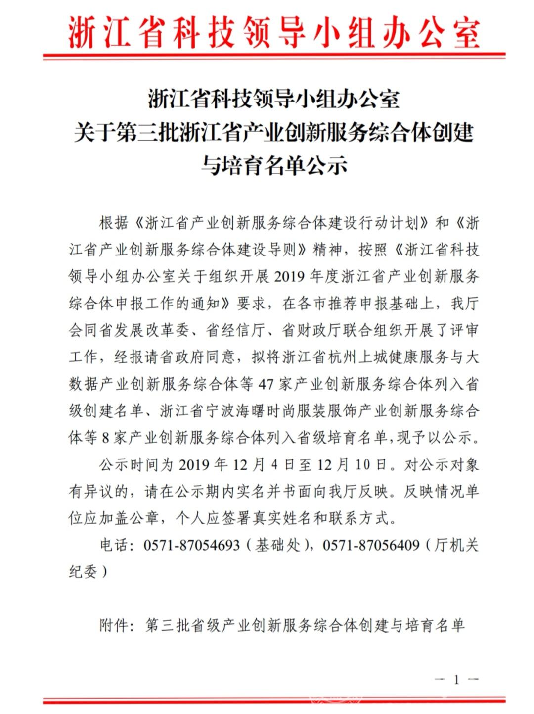 12月4日,浙江省科技领导办公室发文,第三批浙江省产业创新服务综合体创建与培育公示名单发布,由欧美无码 智能锁具研究院负责运营与管理的浙江省温州瓯海智能锁具产业创新服务综合体列入省级创建名单。这是我校研究院负责运行和管理的第二家产业创新服务综合体列入省级创建名单,是我校服务地方产业发展的又一重要成果。