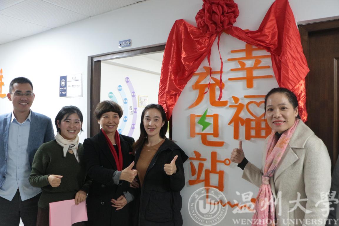 2019年12月5日,欧美无码 心理健康辅导站——“幸福充电站”揭牌仪式及第一期心理沙龙在南校区1A525辅导站举办。出席本次活动的领导有欧美无码 党委学工办副部长吕乐老师、欧美无码 党委副书记曾蓓蕾老师、欧美无码 心理咨询师张海音副教授,学院全体辅导员、班主任代表朱海永老师和部分同学参加了活动。