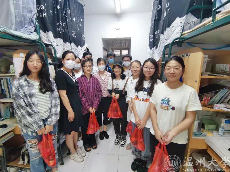 打开宿舍门,迎来的是一张张惊喜的脸庞,教工党员及班主任,一方面向同学们询问了假期生活和学习状况,另一方面也询问了开学返校之后学生们的整体状况,叮嘱他们在校期间要做好防护,理解并遵从学校疫情防控的各项规定,返学并不意味着疫情防控的结束,而更应该提高警惕,高标准严格要求自己。当前是温大疫情管控的非常时期,老师们为了安全虽然都佩戴了口罩,但眉宇之间仍透露出对学生的关爱与呵护,师生们相处融洽,寝室氛围其乐融融,活动渐渐在欢声笑语中结束。