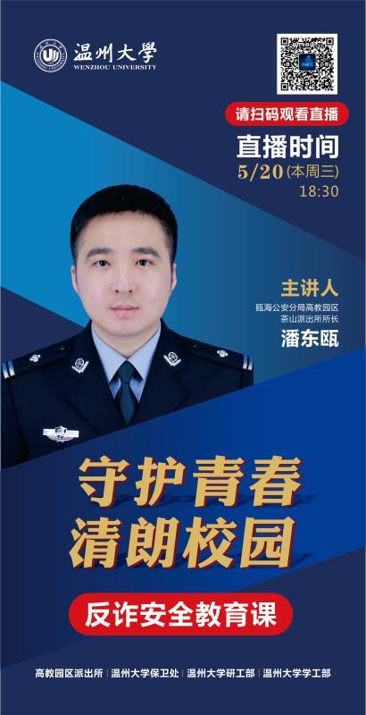 为做好反诈安全宣传教育,切实增强广大师生防范电信网络诈骗的意识,5月20日晚,学校举行了全校师生“同上一堂反诈安全教育课”的线上活动,本次线上活动以“守护青春 清朗校园”为主题,由瓯海公安分局高教园区派出所所长潘东瓯主讲,欧美无码 学子积极参与线上学习。