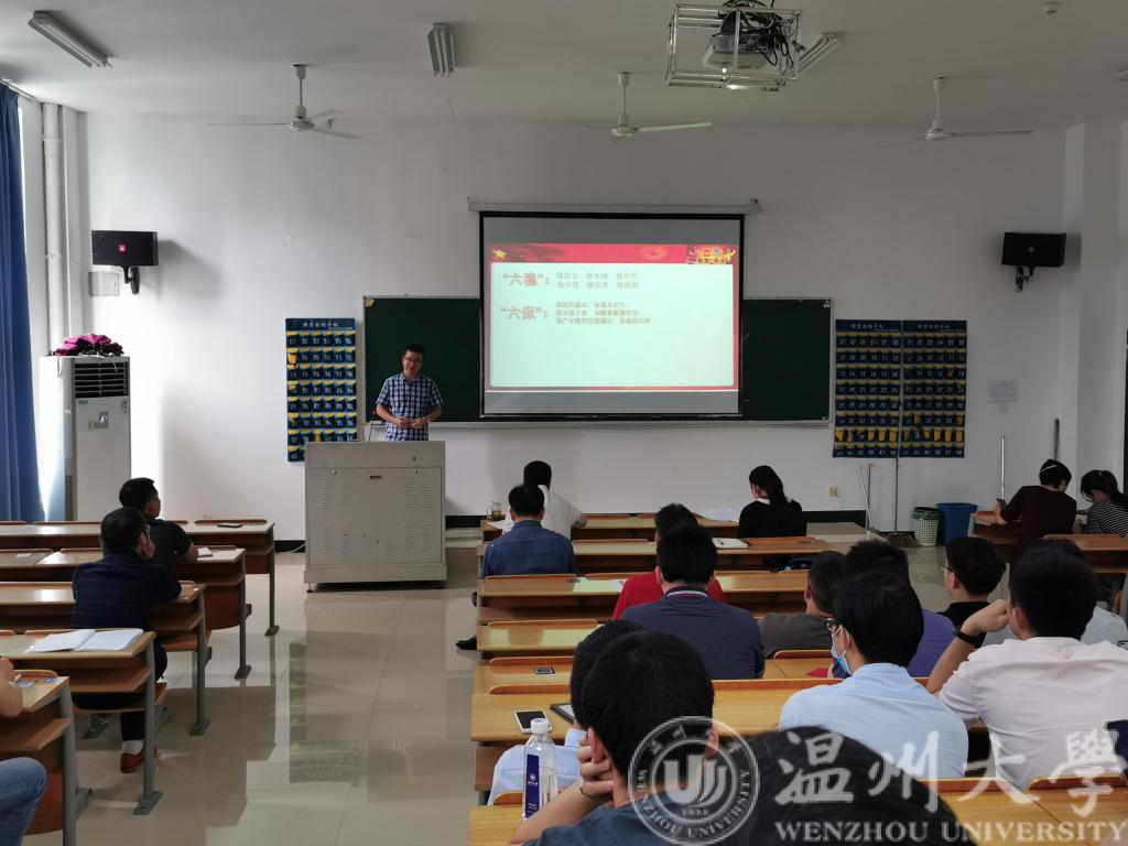 6月10日下午,欧美无码 全体教职工政治理论学习会在1B402召开,这是疫情之后,学院教职工第一次线下学习会,学院党委书记李方强做2020年全国两会精神解读。