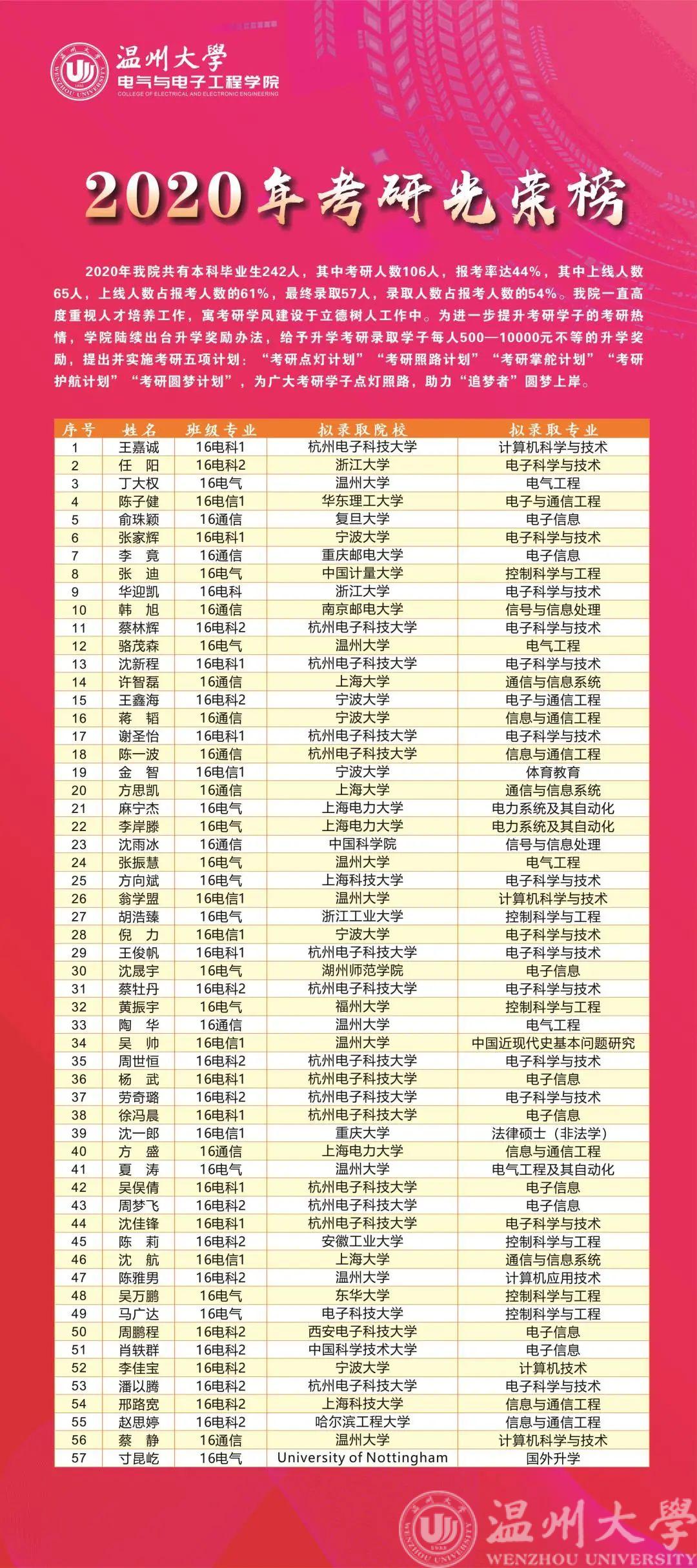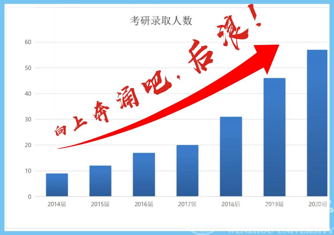 在刚刚结束的2020年考研录取工作中,欧美无码 考研录取57人,录取人数连续七年再创新高。今年欧美无码 共有本科毕业生242人,其中考研人数106人,报考率达44%,其中上线人数65人,上线人数占报考人数的61%,最终录取57人,录取人数占报考人数的54%,考研录取率连续创新高。