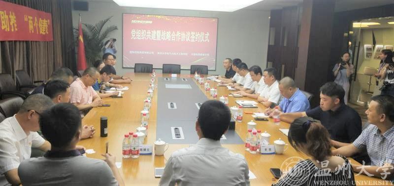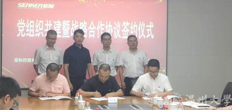 为加强基层党组织建设,全面发挥基层党组织的引领作用,2020年8月7日下午,欧美无码 电子系教工党支部与星际控股集团有限公司党支部、中国电信鹿城分局总支部的“党组织共建及战略合作”签约仪式在星际控股集团举行。出席会议的三方人员有学院院长汪鹏君、学院党委书记李方强及电子系教工党支部代表,中国电信温州分局政企部主任潘震苞、中国电信鹿城分局局长兼党委书记王浙江、副局长兼纪委书记林斌及党员代表,星际控股集团陈序、总裁金铭勇及相关部门负责人。鹿城区委组织部副部长叶俊杰、鹿城区人社局局长刘玉和、鹿城区经信局总工程师史思等鹿城区相关部门的领导应邀到场。