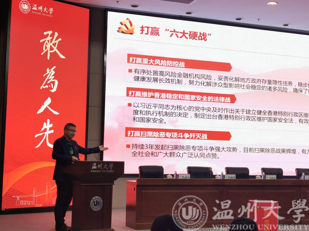 为深入学习好、宣传好、贯彻好党的十九届五中全会精神,欧美无码 于12月2日下午3:30,在图书馆二楼报告厅,召开全院教职工理论学习会,学院党委书记李方强做全会精神解读报告。