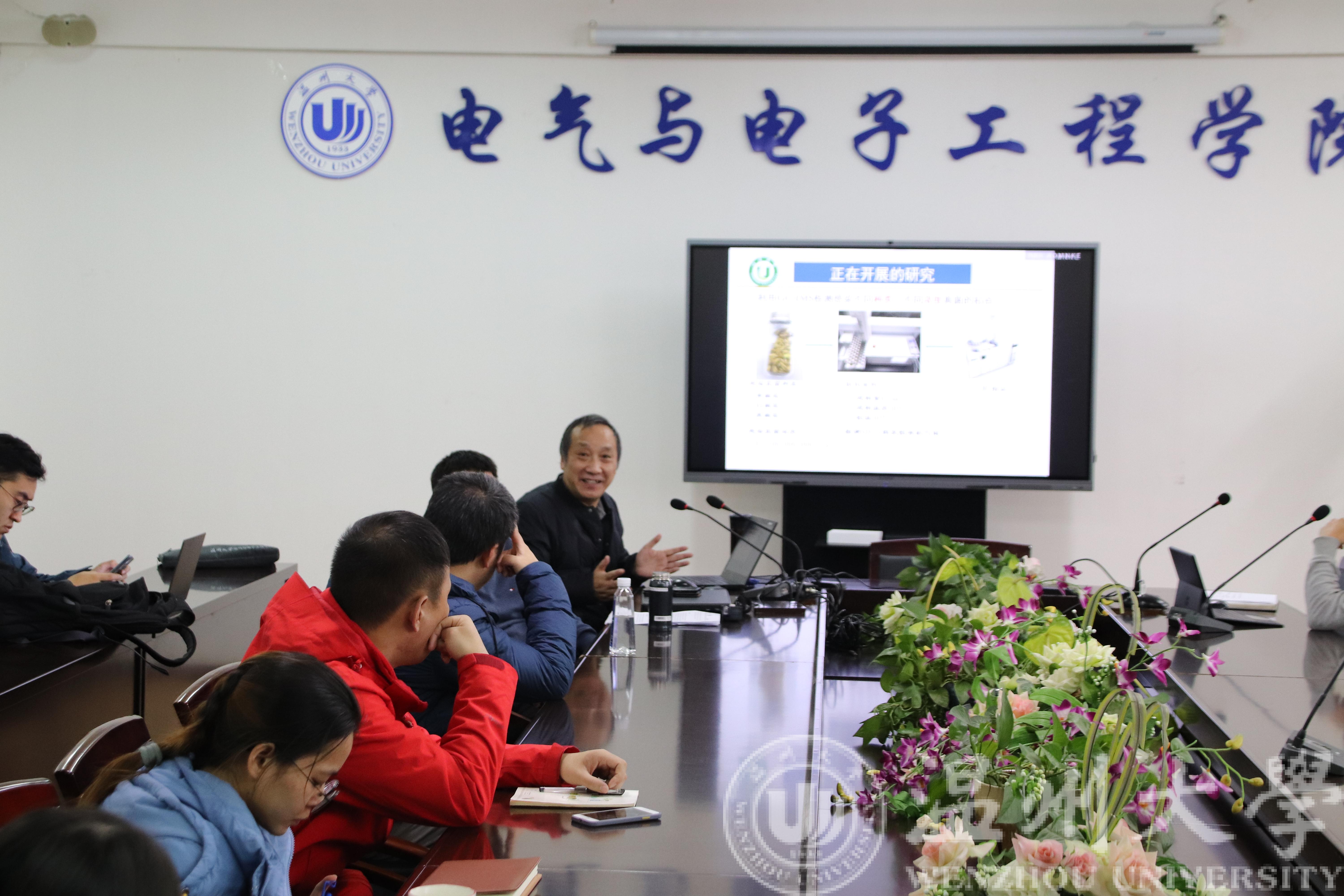 12月15日,江苏大学陈斌教授受邀来访欧美无码 电气学院,并于15日下午14:00-16:00在电气学院1A502会议室举办题为“基于GC-IMS联用技术在大米早期霉变监测中的研究研究”的学术报告。电气学院电子系陈孝敬副院长、袁雷明老师热情接待了陈斌教授,并邀请课题组黄光造、石文、陈熙、蒋成玺等多位青年教师,及20多位研究生参加。