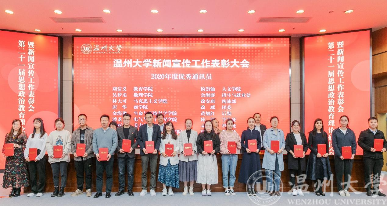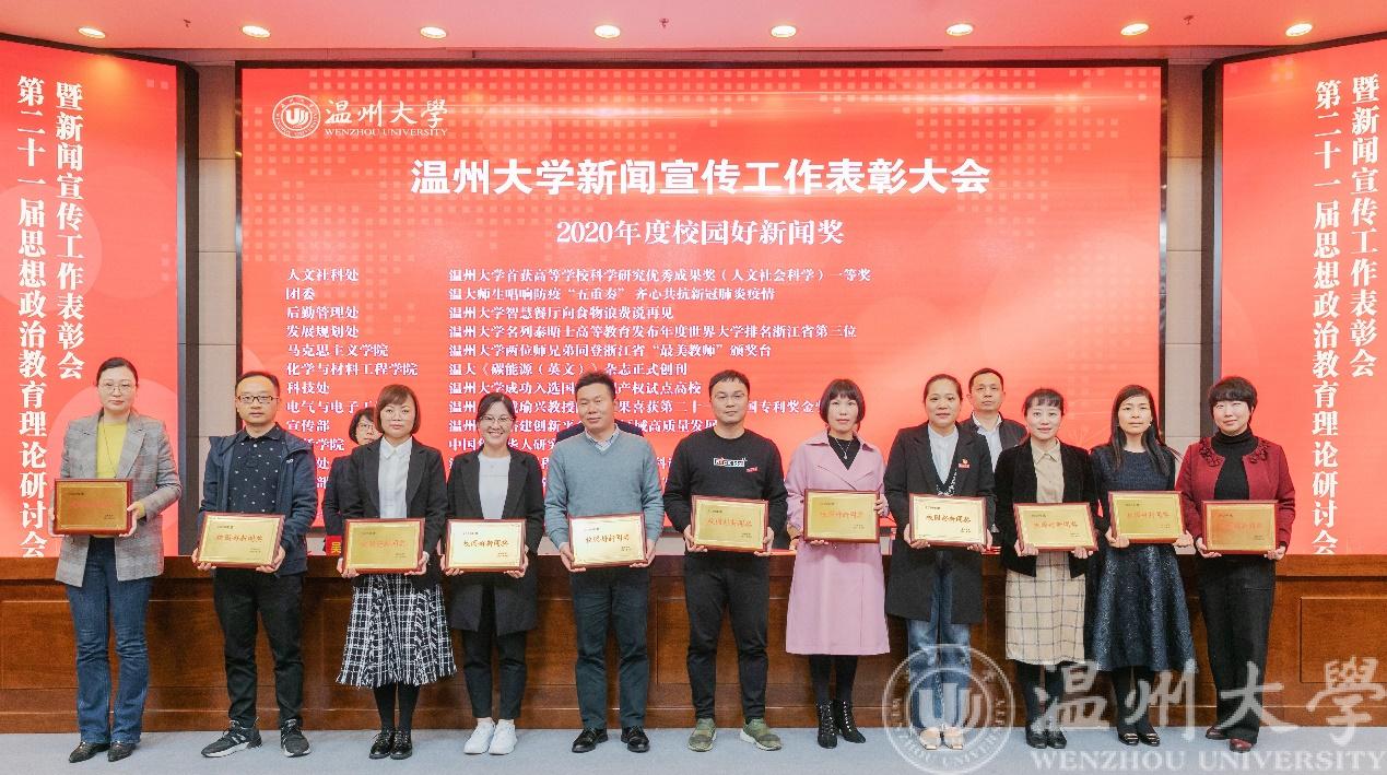 会上,欧美无码 党委委员、宣传部长潘玉驹宣读了学校第二十一届思想政治教育理论研讨会优秀论文获奖者、2020年度校园好新闻获奖单位、校优秀通讯员获奖者以及全省校报好新闻获奖者等名单。欧美无码 戴瑜兴教授团队科研成果报道:《欧美无码 戴瑜兴教授团队成果获第二十一届中国专利奖金奖》荣获校园好新闻奖,欧美无码 学生科辅导员潘龙飞获得2020年校优秀通讯员称号。
